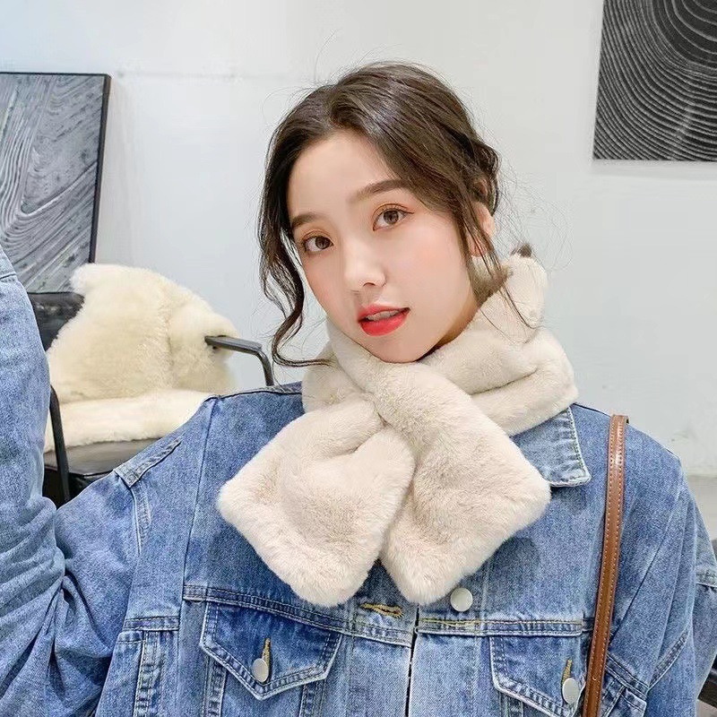 폭발성 겨울 토끼 모피 스카프 여성 두꺼운 봉제 목 한국 스타일 모조 모피 머리 목 목걸이 올매치 귀여운 모피 칼라