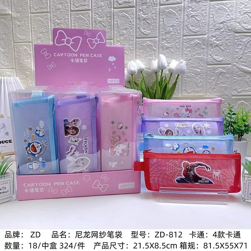 • ZD-812 만화 나일론 메쉬 필통 무작위 혼합 스타일(18개/상자)