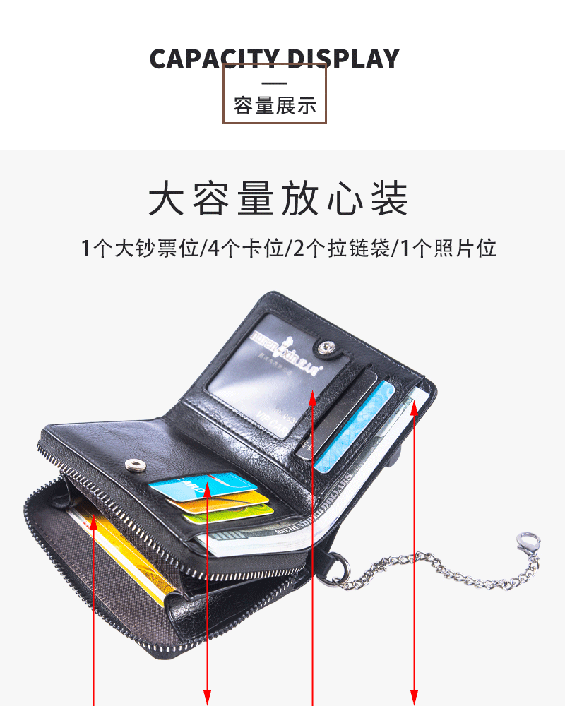 다중 카드 슬롯과 대용량을 갖춘 남성용 지갑, 80% off개의 지퍼가 있는 돈과 카드를 하나로 통합한 가방, PU 가죽 남성용 지갑 공장