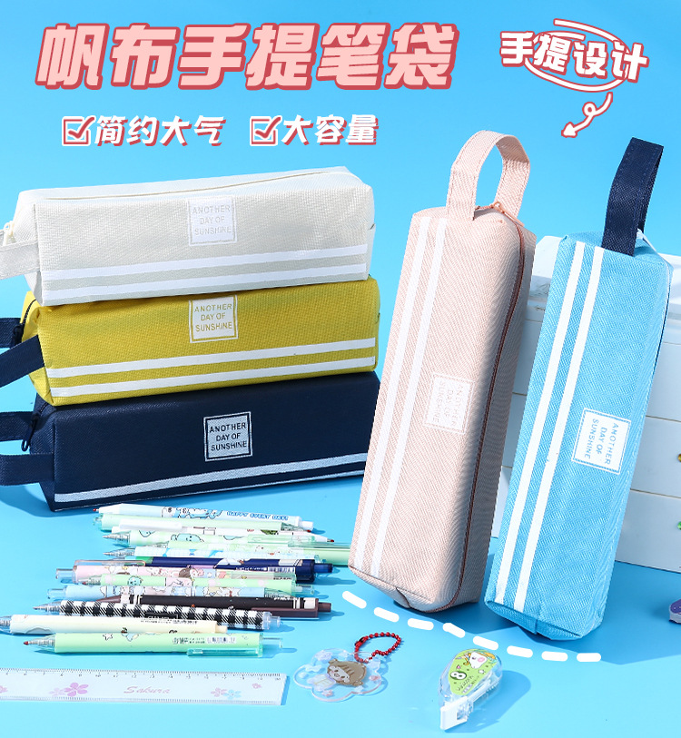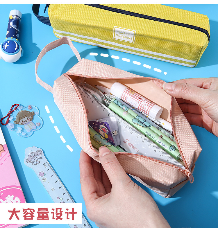 초등학교 학생 캔버스 연필 케이스 한국 간단한 남녀 대용량 휴대용 문구 가방 귀여운 창조적 인 연필 문구 가방