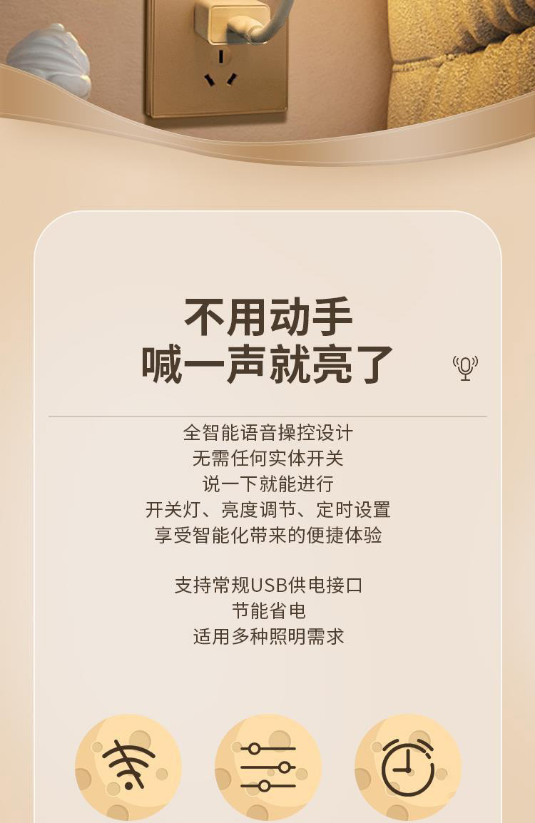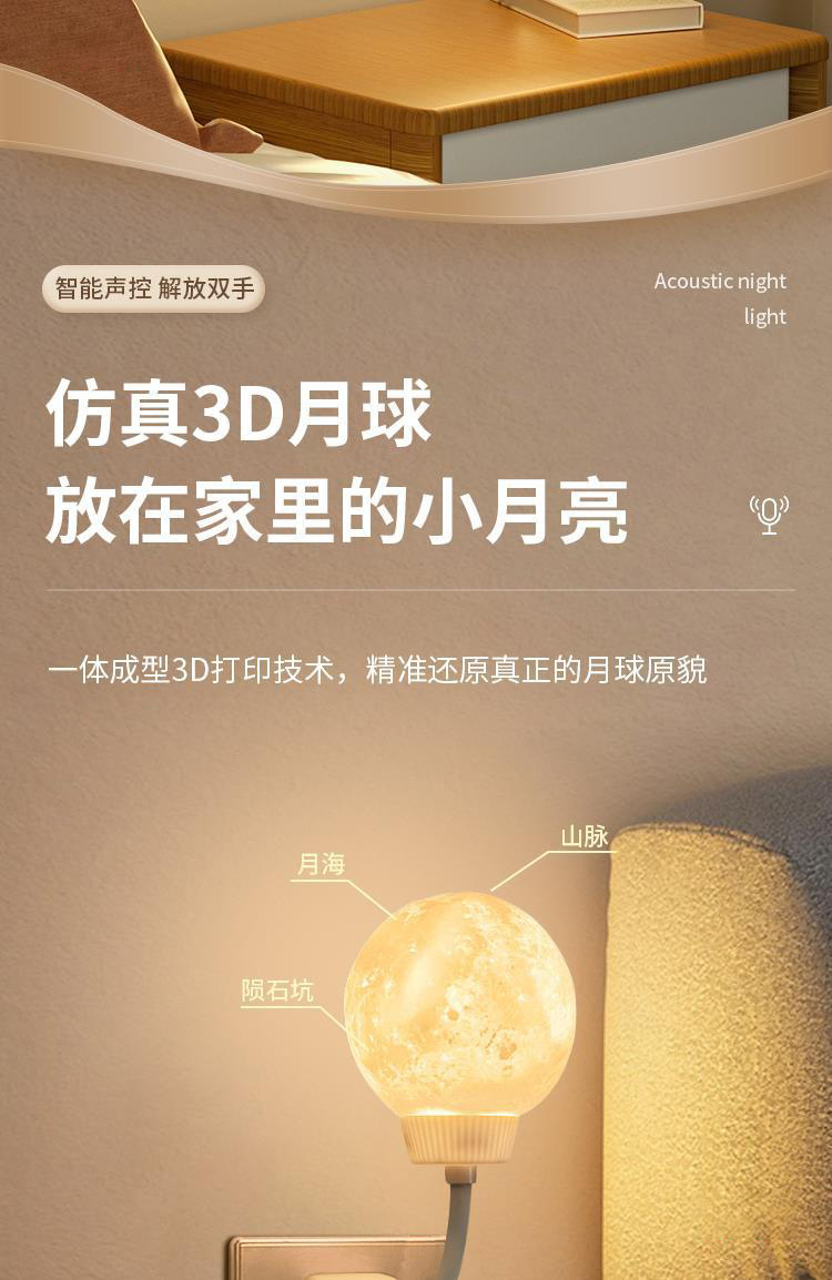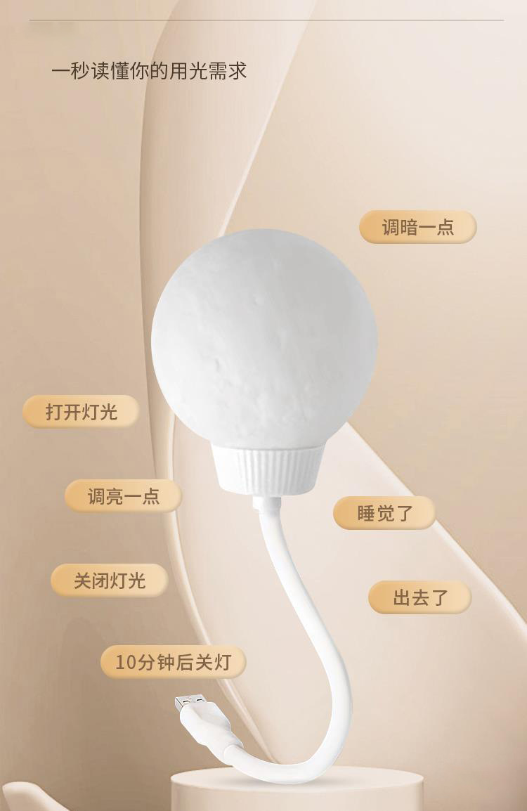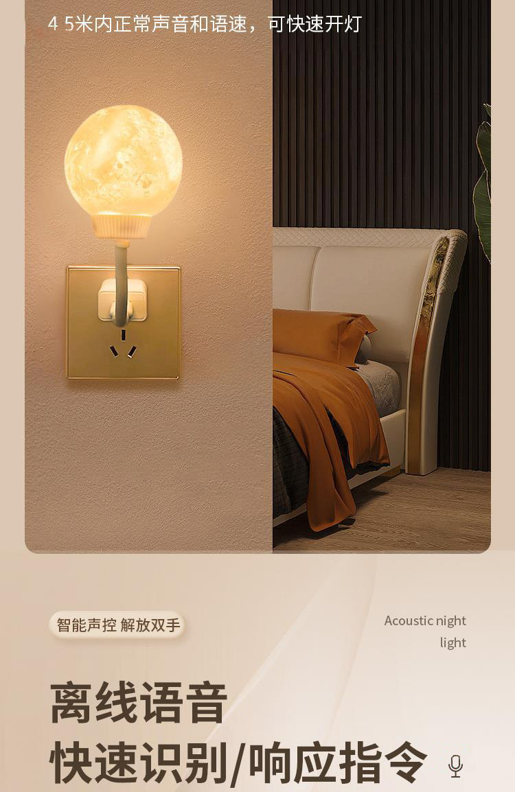 달 조명 USB 야간등 음성 제어 센서등 플러그인 침대 옆등 침실 수면용 작은 테이블 램프 달의 위상 야광등