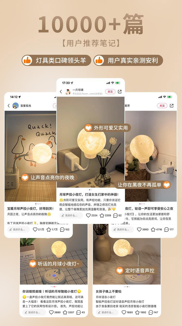 달 조명 USB 야간등 음성 제어 센서등 플러그인 침대 옆등 침실 수면용 작은 테이블 램프 달의 위상 야광등스토어 가기