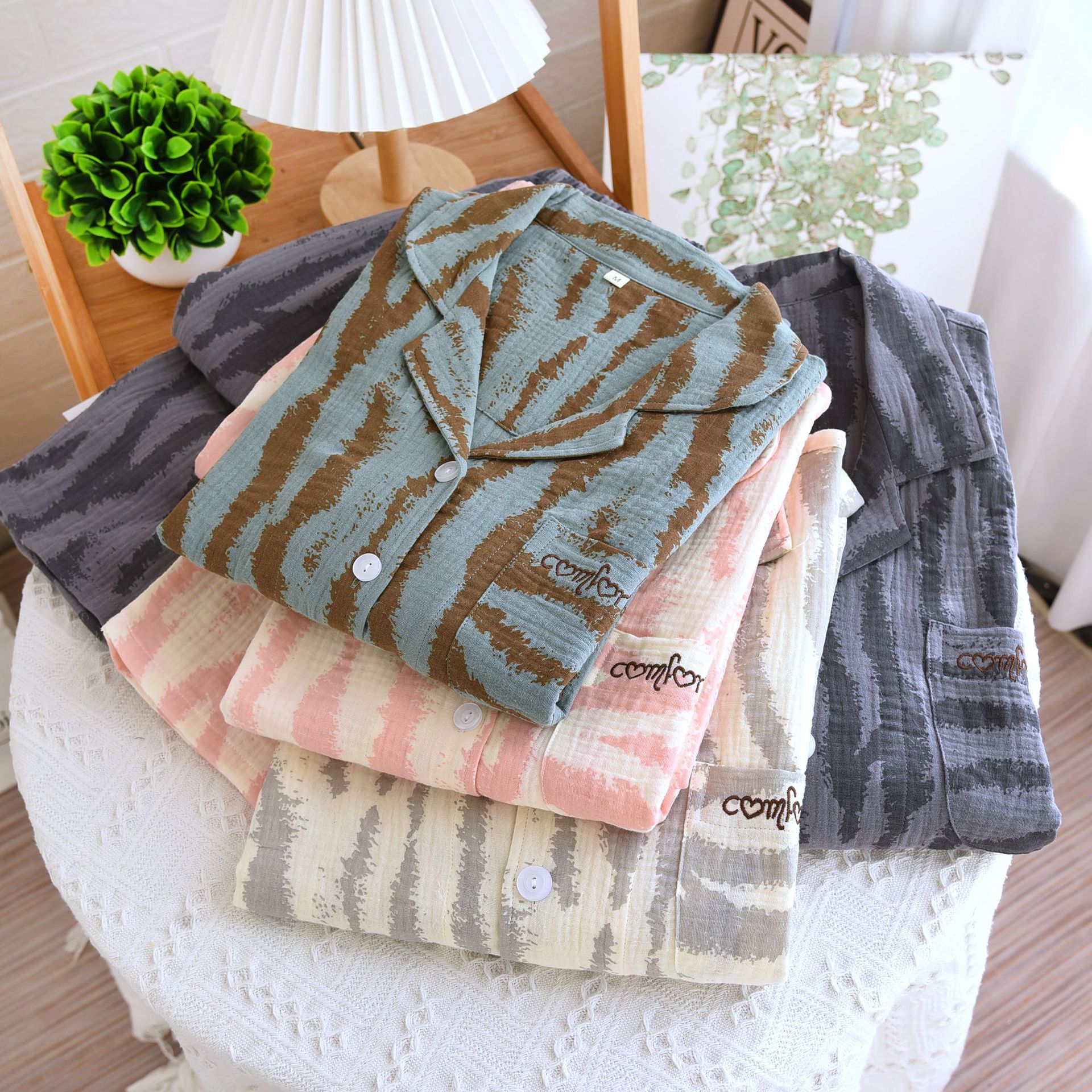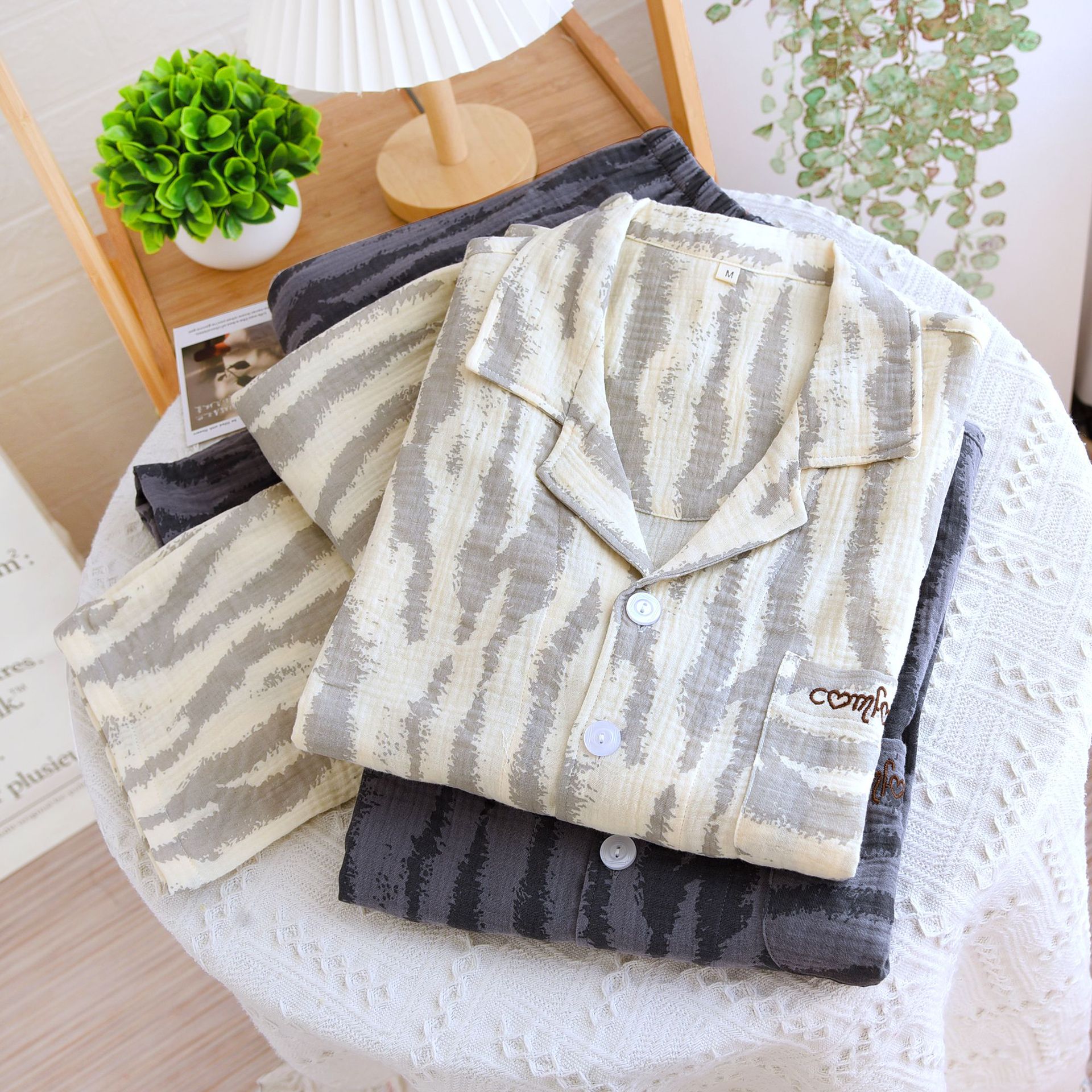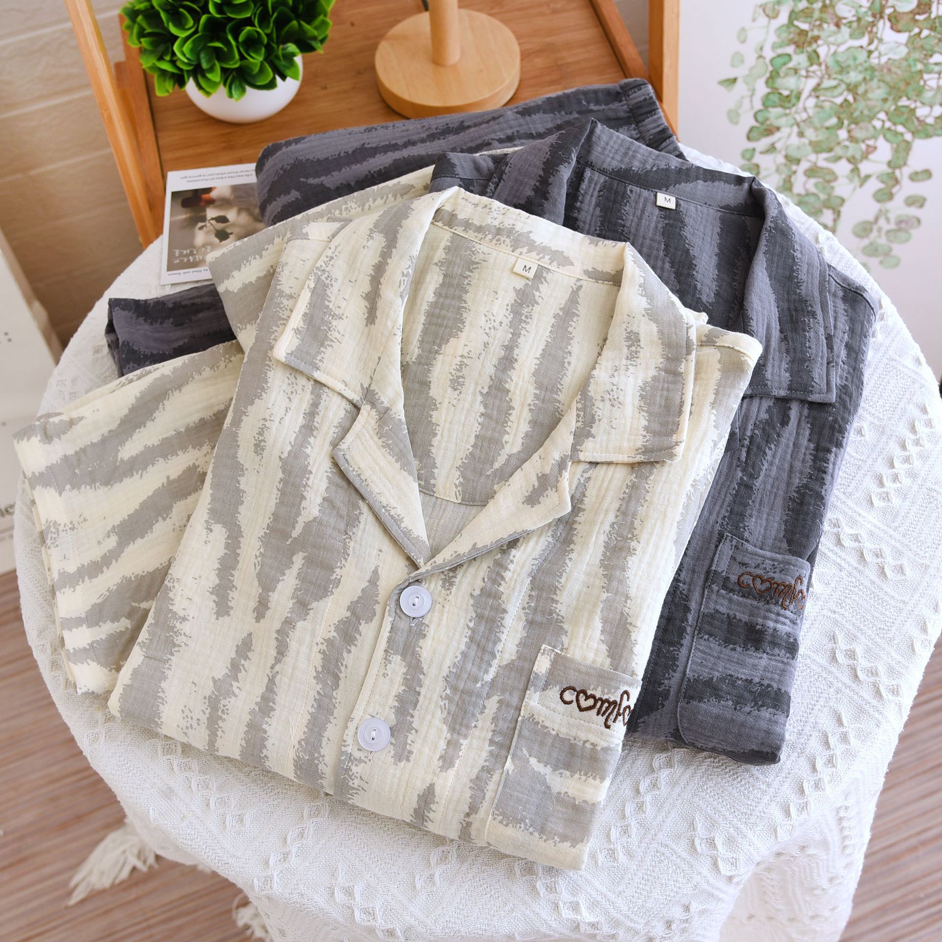 고급 얼룩말 패턴 잠옷 커플 봄과 가을 여성 긴팔 홈 세트 남자 2024 새 집스토어 가기