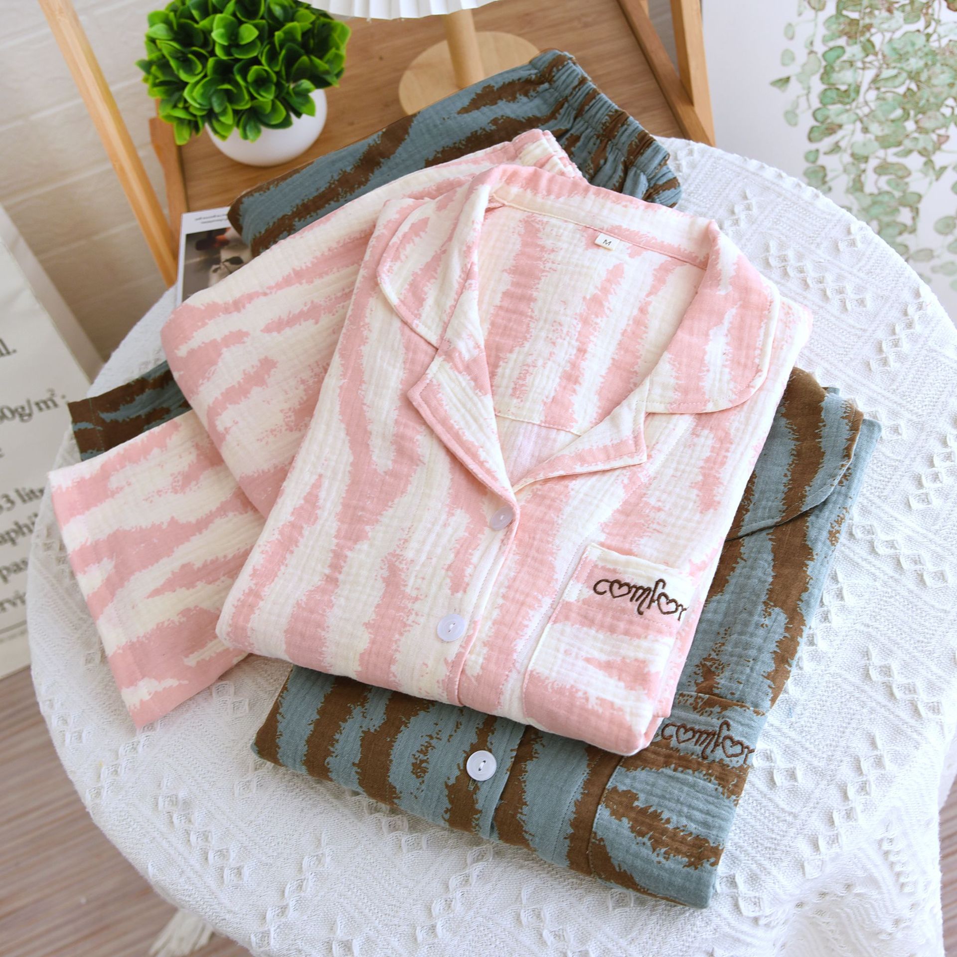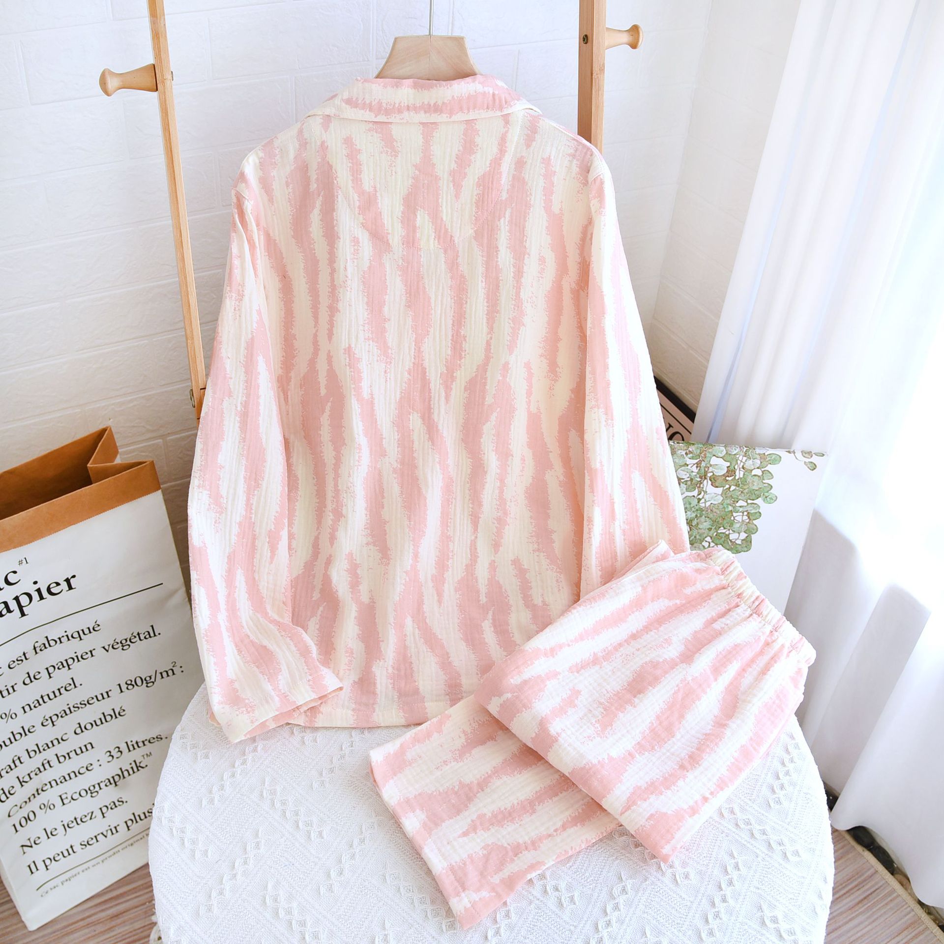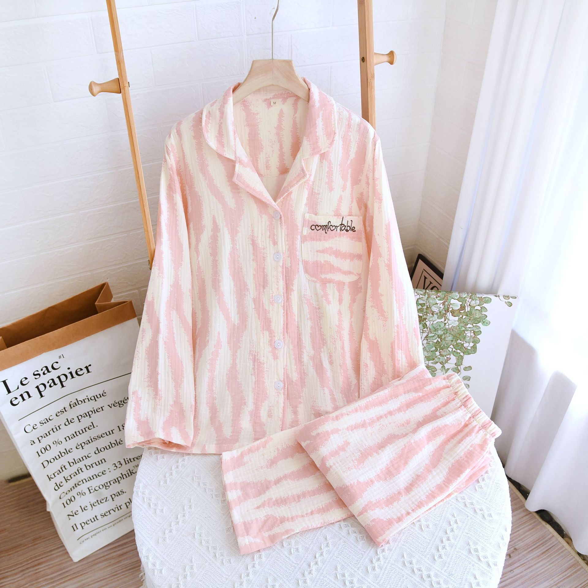 • LYZ 크레이프 얼룩말 패턴 여성 세트 핑크