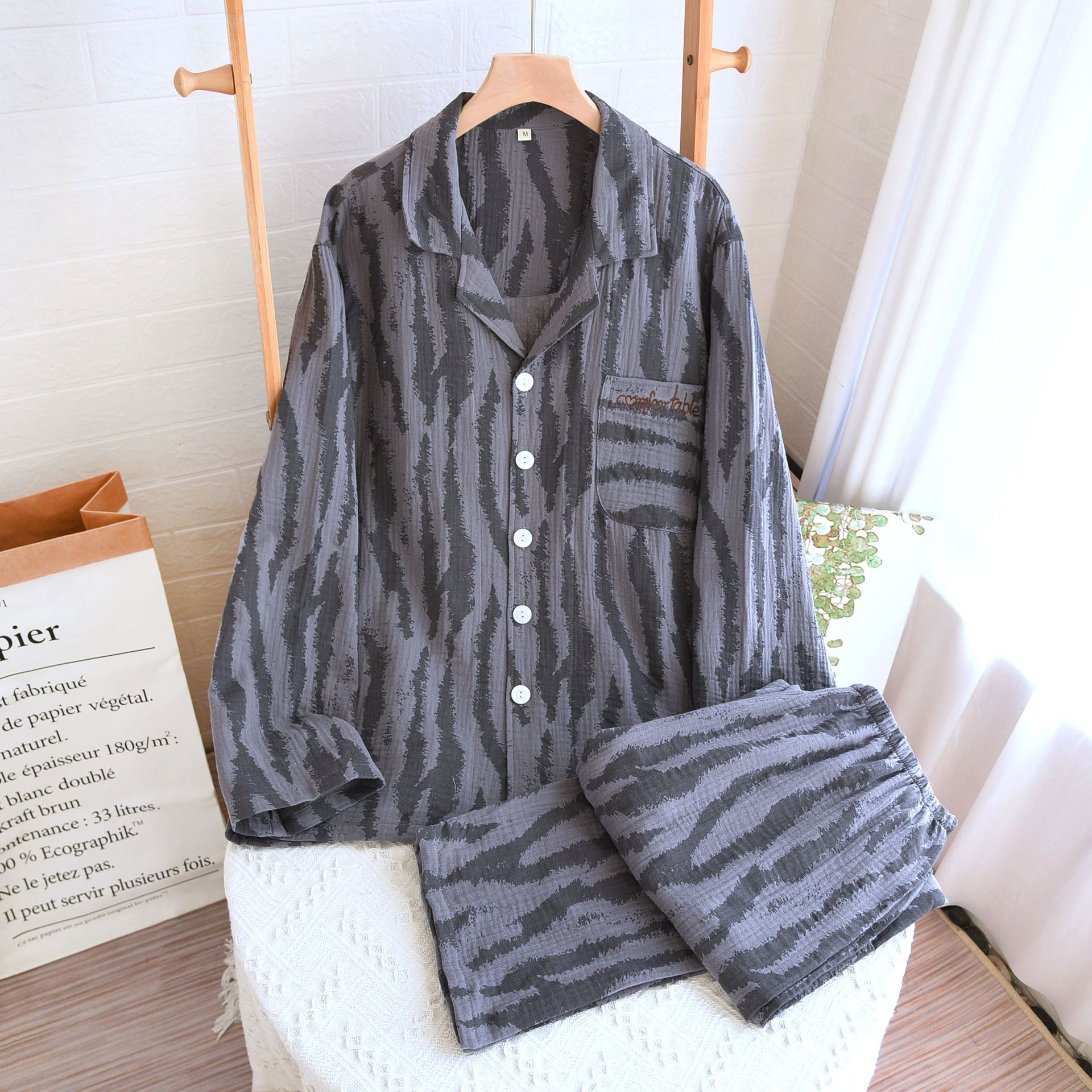 • LYZ 크레이프 얼룩말 패턴 남성 세트-다크 그레이