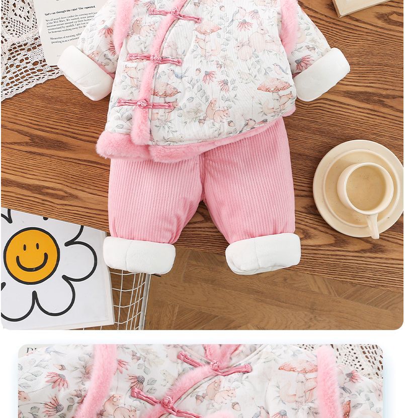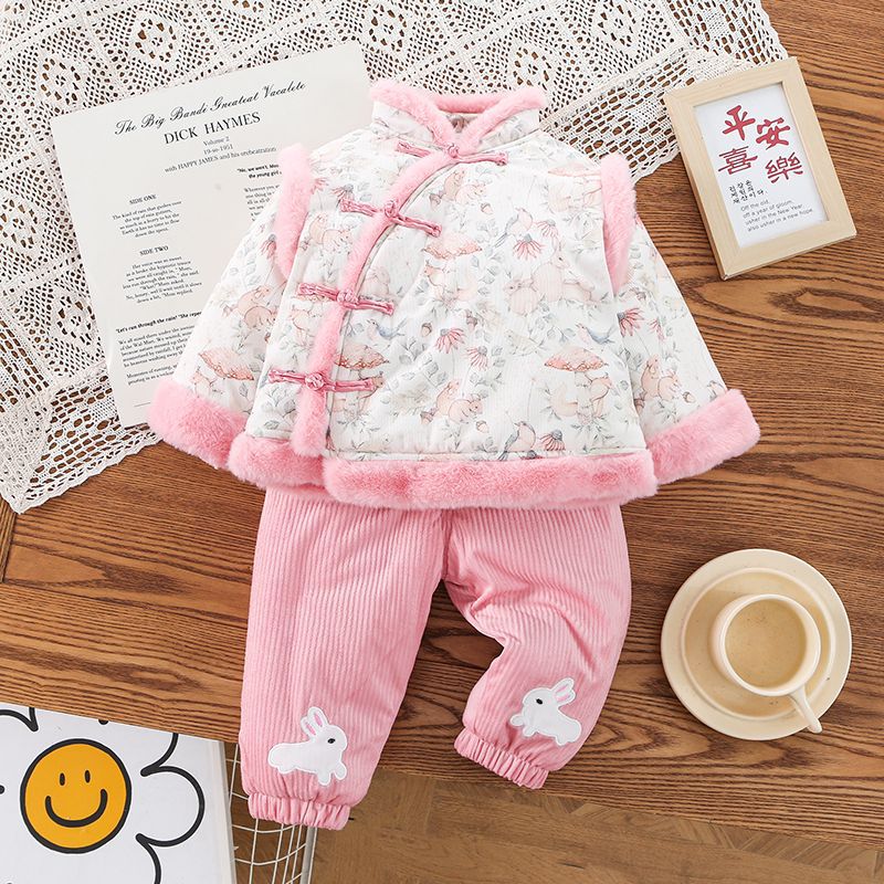 어린이 세트 소녀 탕 세트 두꺼운 중국식 겨울 옷 토끼 새해 인사 세트