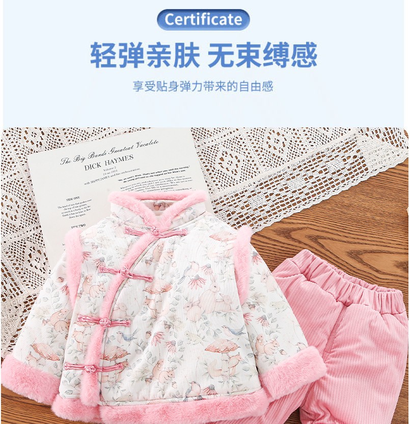 어린이 세트 소녀 탕 세트 두꺼운 중국식 겨울 옷 토끼 새해 인사 세트스토어 가기