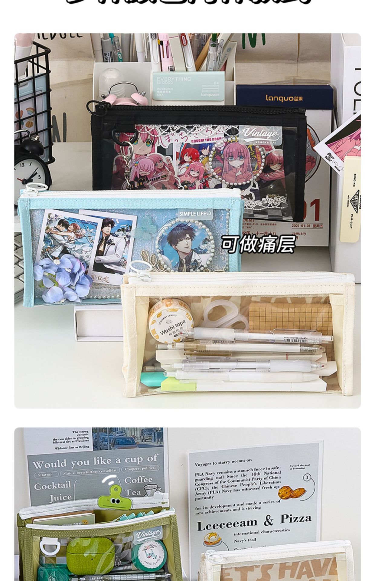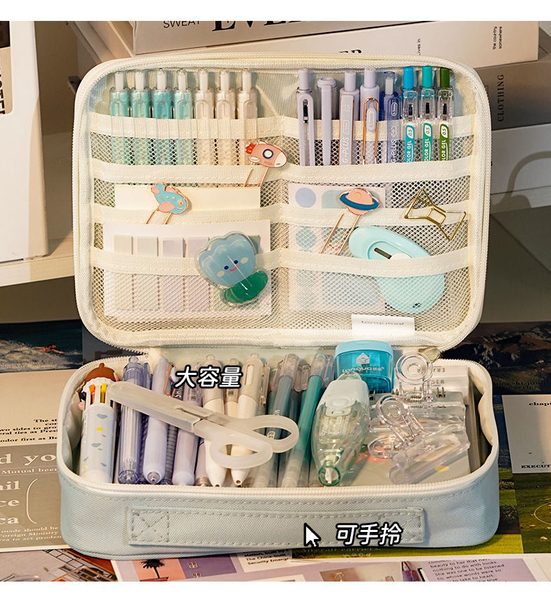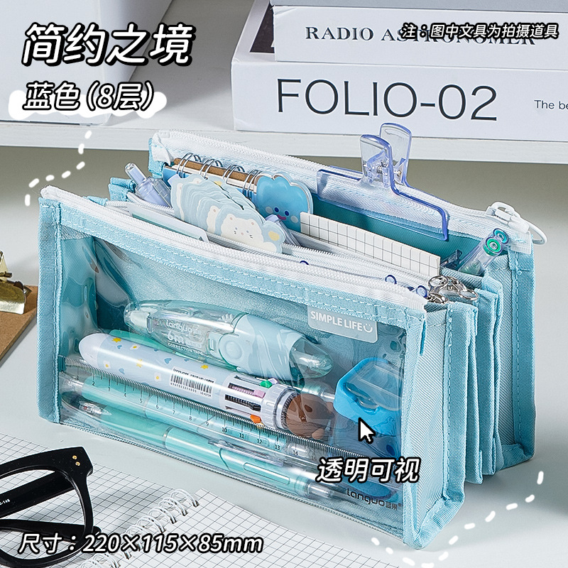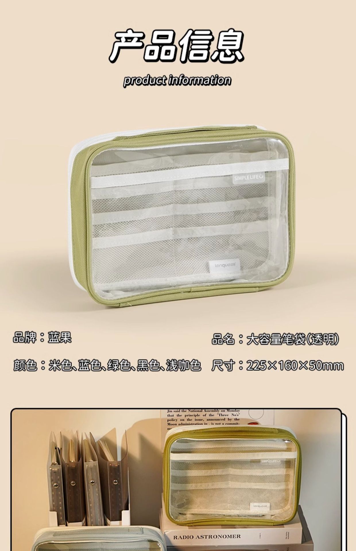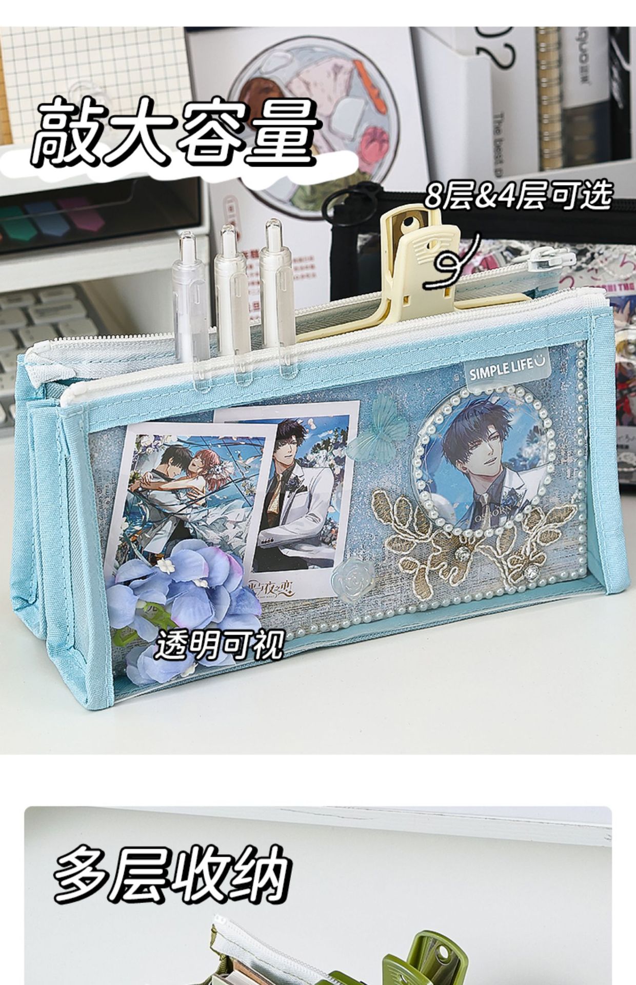 블루 과일 투명 연필 케이스 바 통증 가방 연필 케이스 다기능 다층 대용량 곡물 저장 연필 케이스 소녀 높은스토어 가기