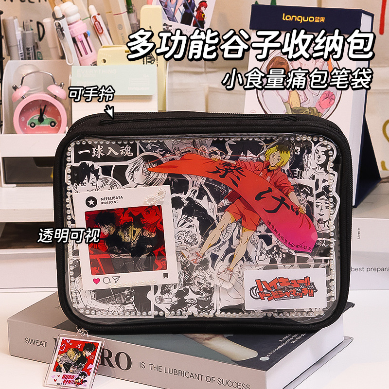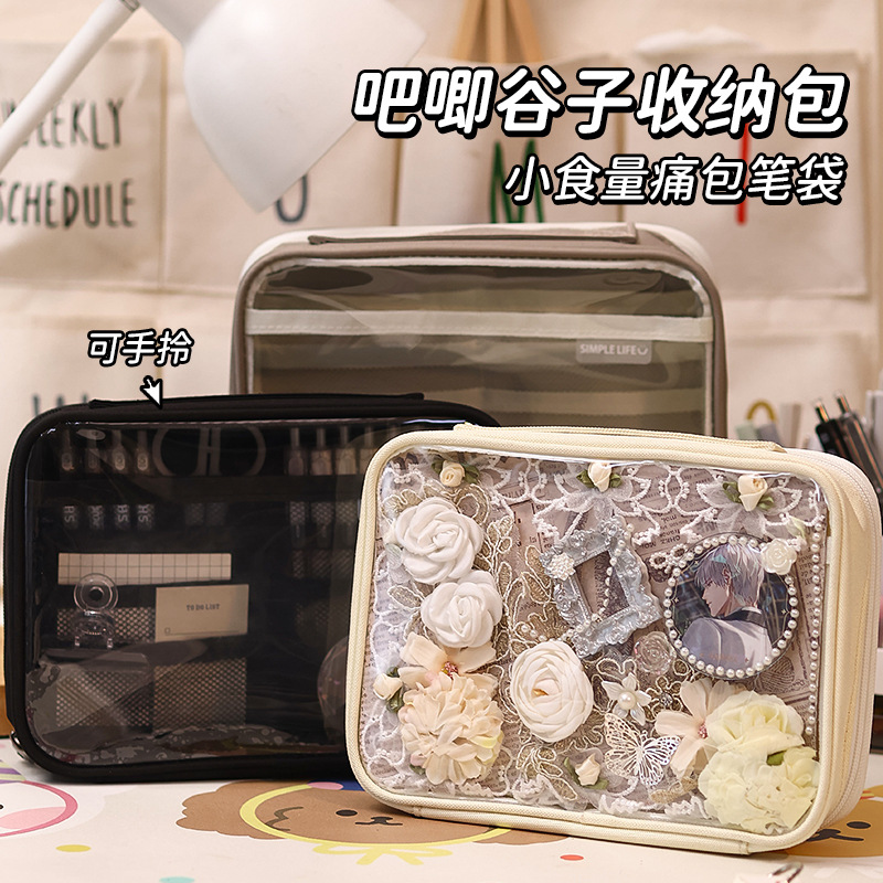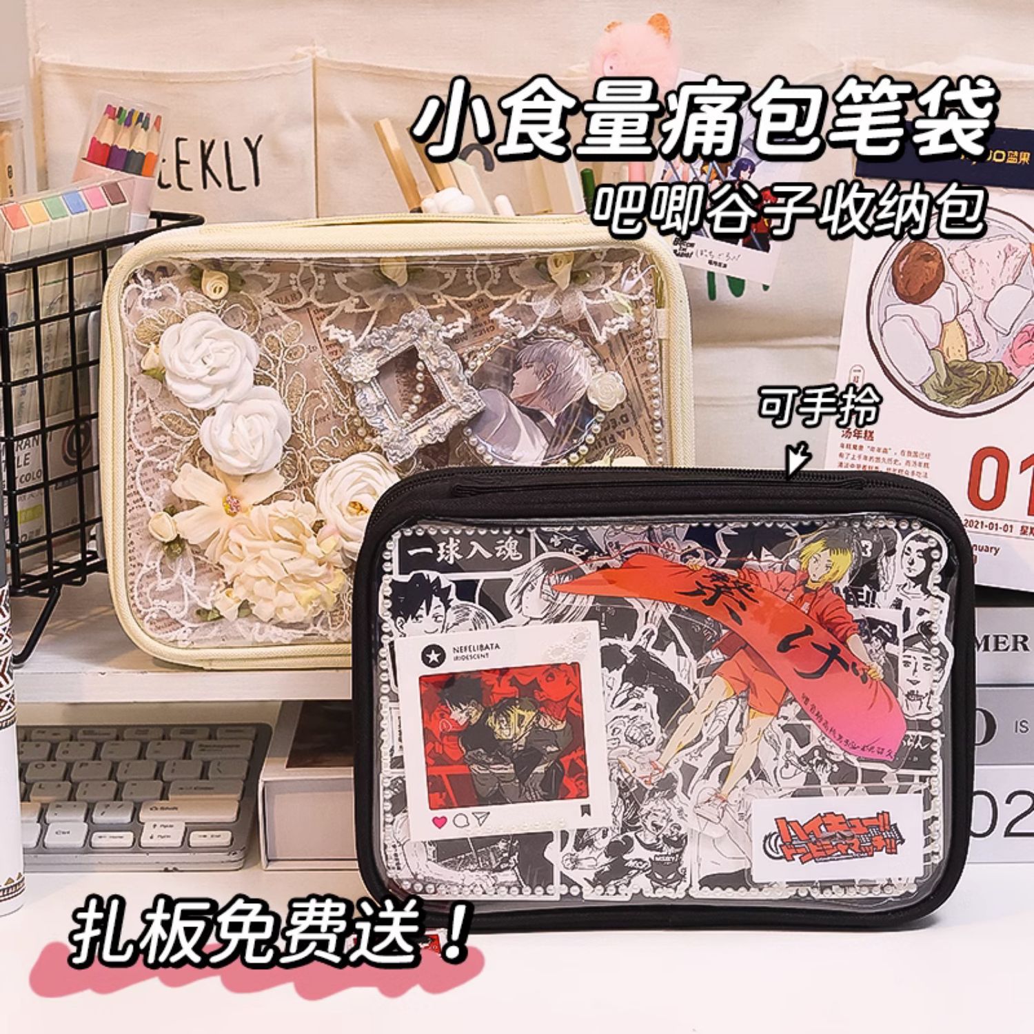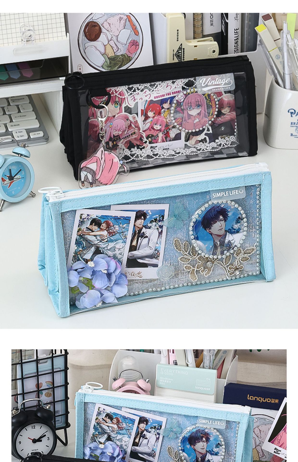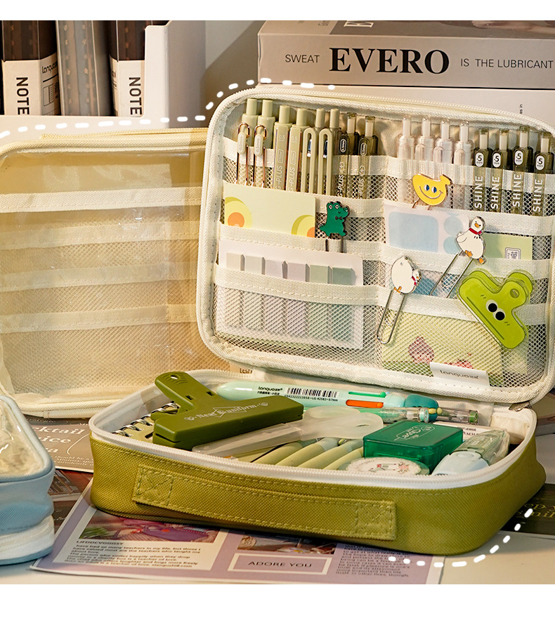 블루 과일 투명 연필 케이스 바 통증 가방 연필 케이스 다기능 다층 대용량 곡물 저장 연필 케이스 소녀 높은스토어 가기