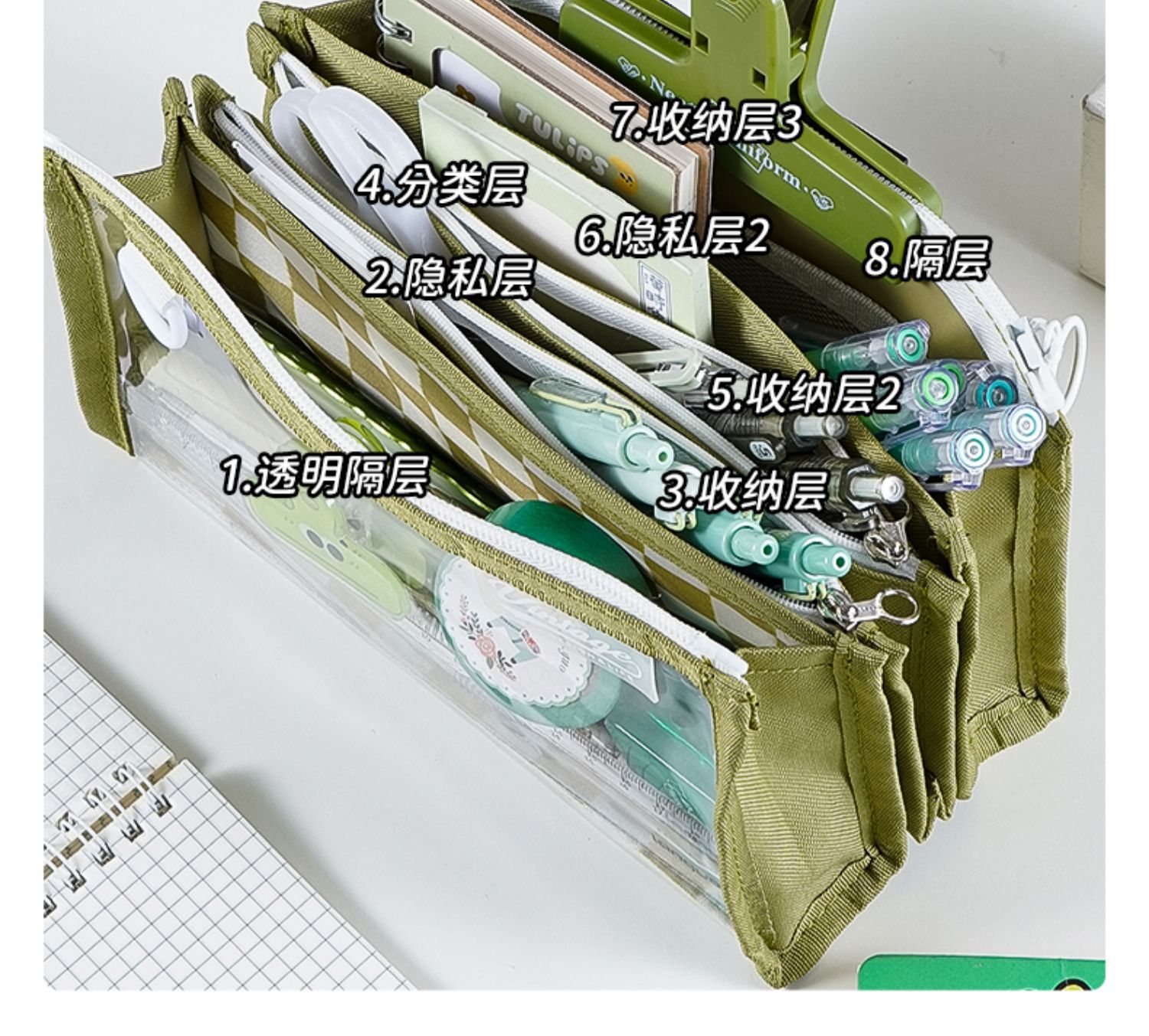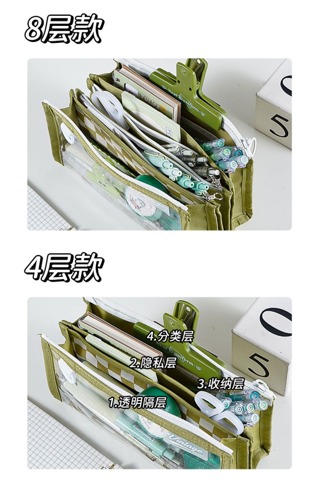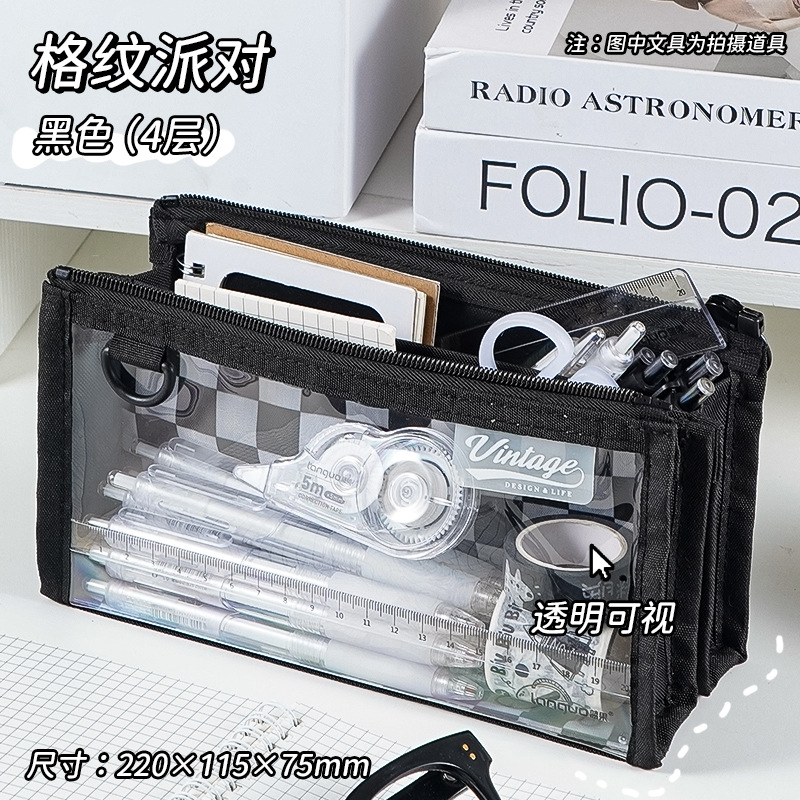블루 과일 투명 연필 케이스 바 통증 가방 연필 케이스 다기능 다층 대용량 곡물 저장 연필 케이스 소녀 높은