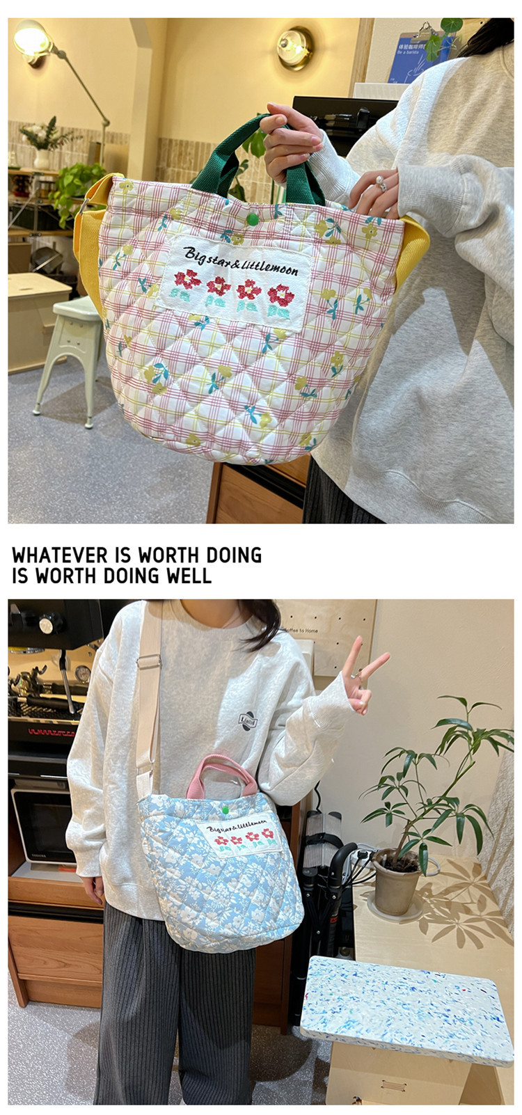 루시 같은 꽃 양동이 가방 가을 겨울 새로운 대용량 핸드백 올 매치 메신저 가방 미라 가방