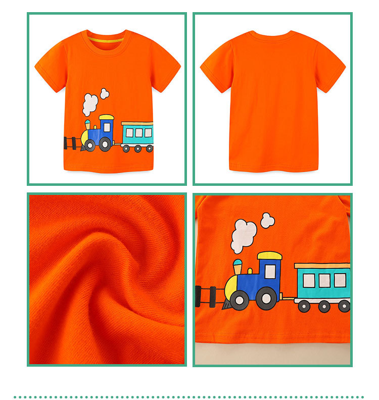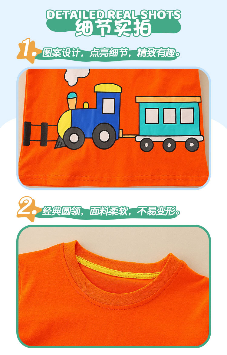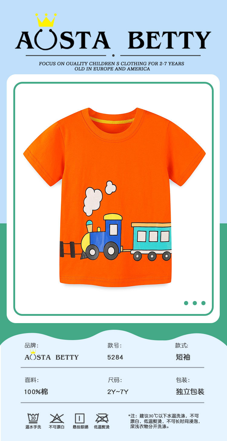 유럽과 미국 스타일의 패션 소년 티셔츠 여름 2022 새로운 만화 기차 인쇄 어린이 라운드 넥 반팔 탑