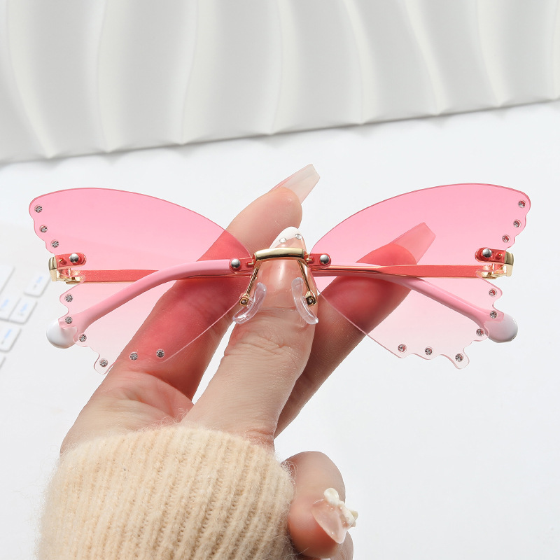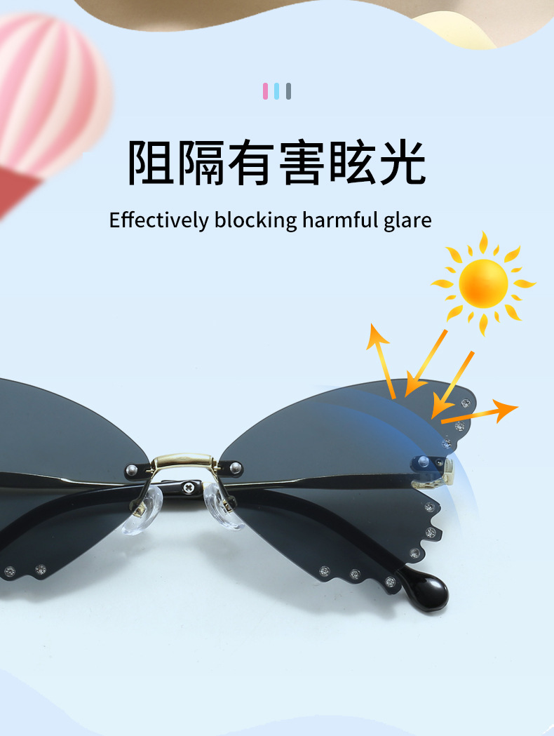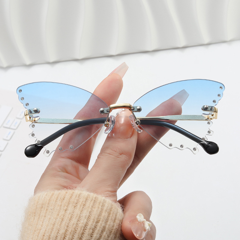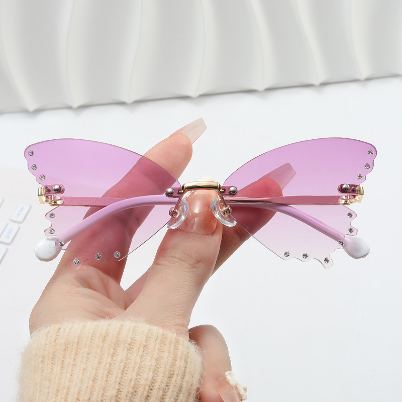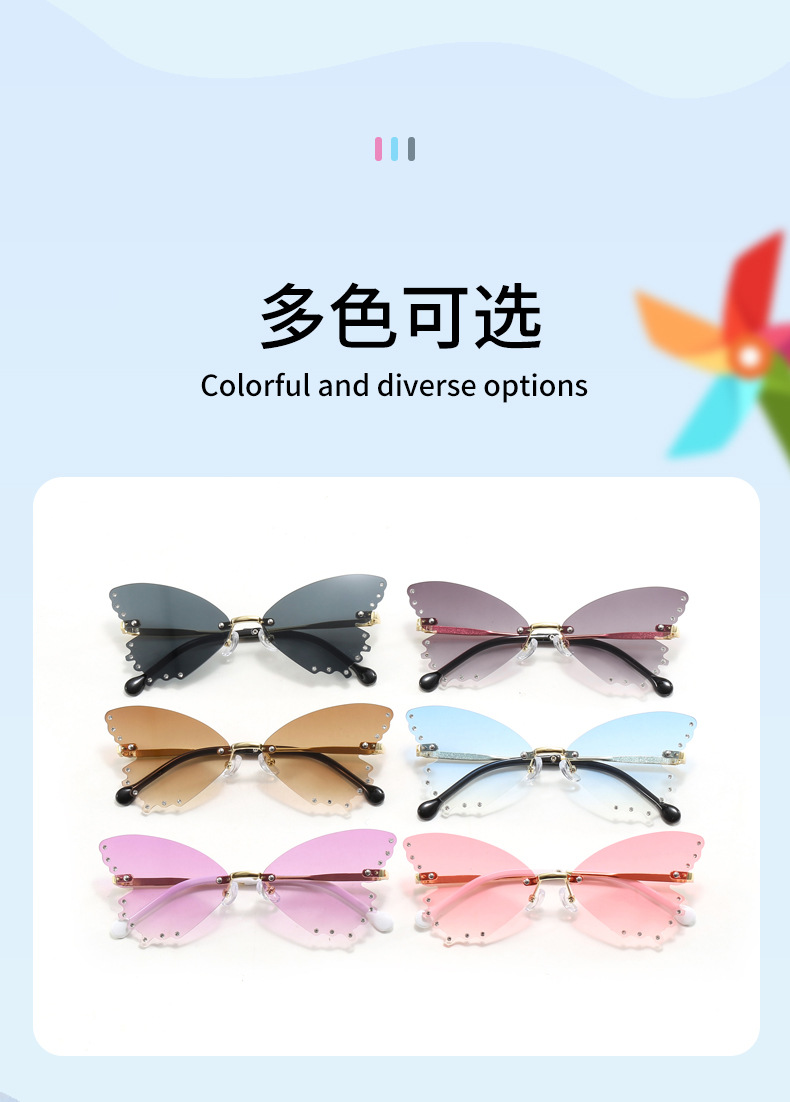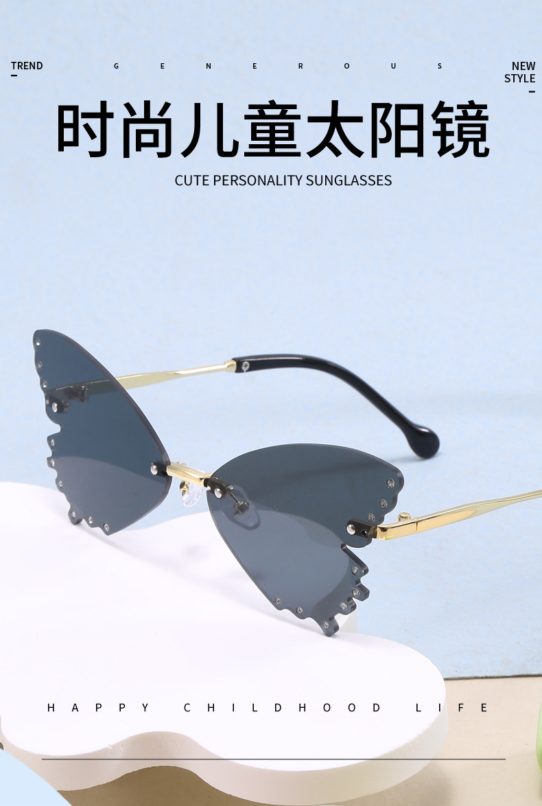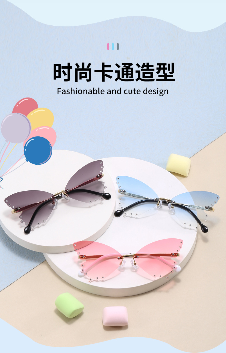 새로운 국경 틀이없는 어린이 나비 다이아몬드 금속 선글라스 소년 소녀 여행 레저 장식 태양 방지 선글라스스토어 가기