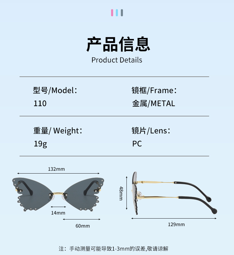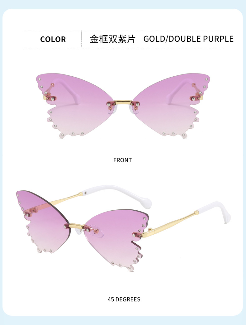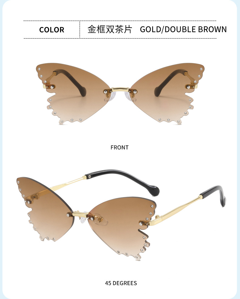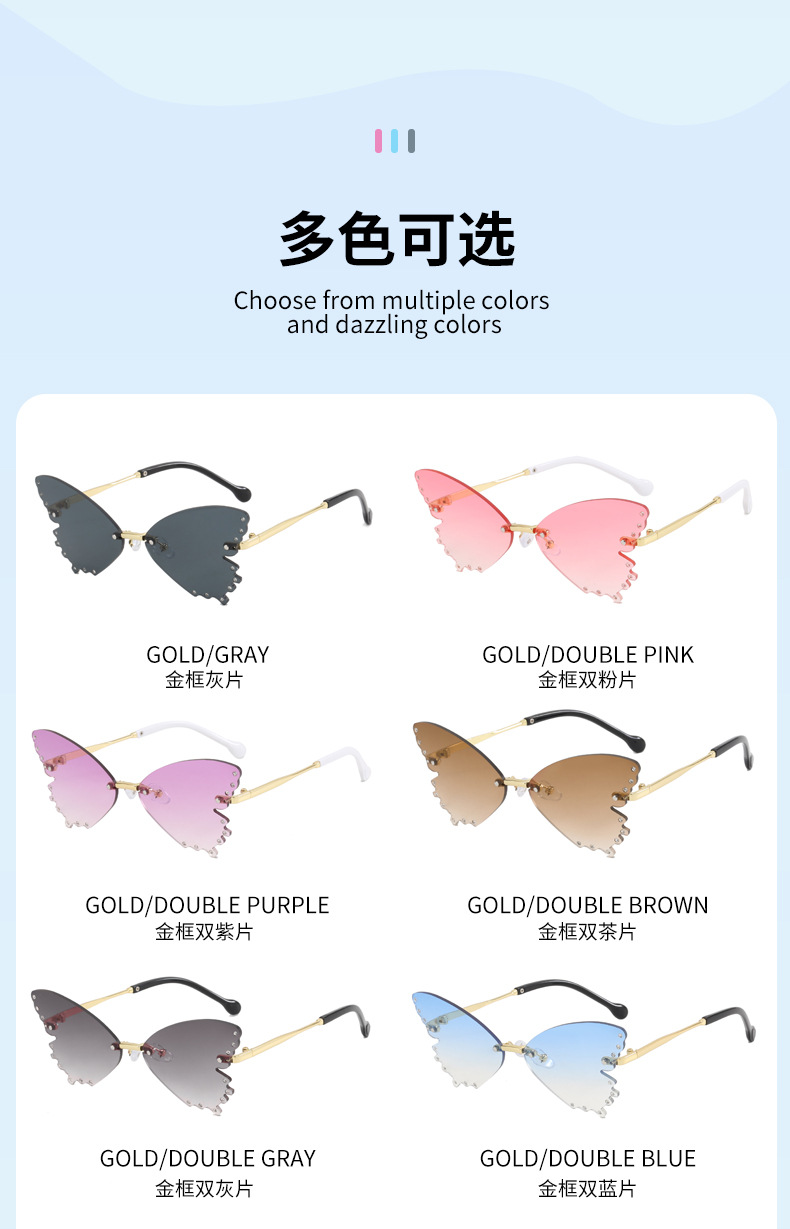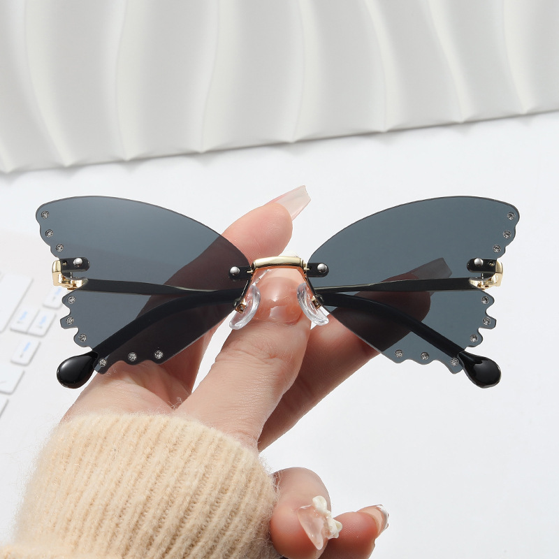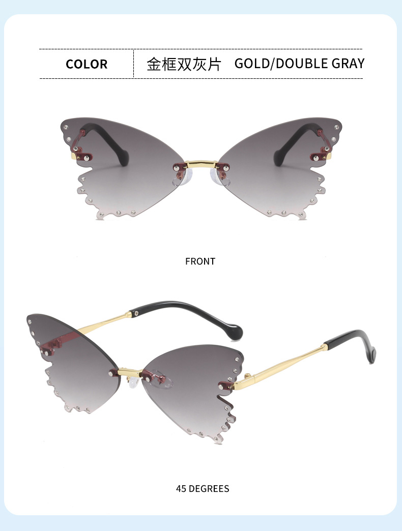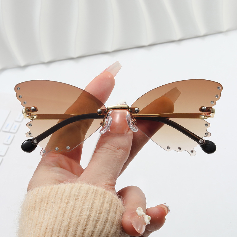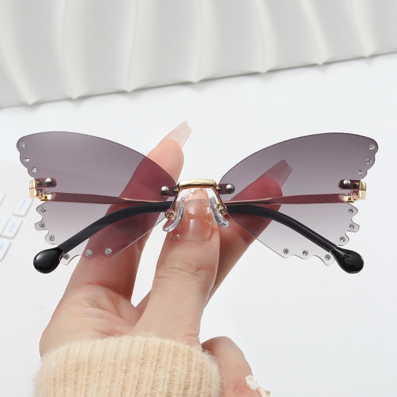 새로운 국경 틀이없는 어린이 나비 다이아몬드 금속 선글라스 소년 소녀 여행 레저 장식 태양 방지 선글라스스토어 가기
