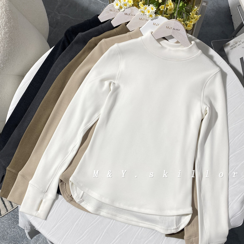 룰루 같은 스타일 벨벳 하프 하이 칼라 요가 스포츠 티셔츠 여성 가을 및 겨울 스포츠 슬림 핏 하프 하이 칼라 따뜻한베이스 셔츠스토어 가기
