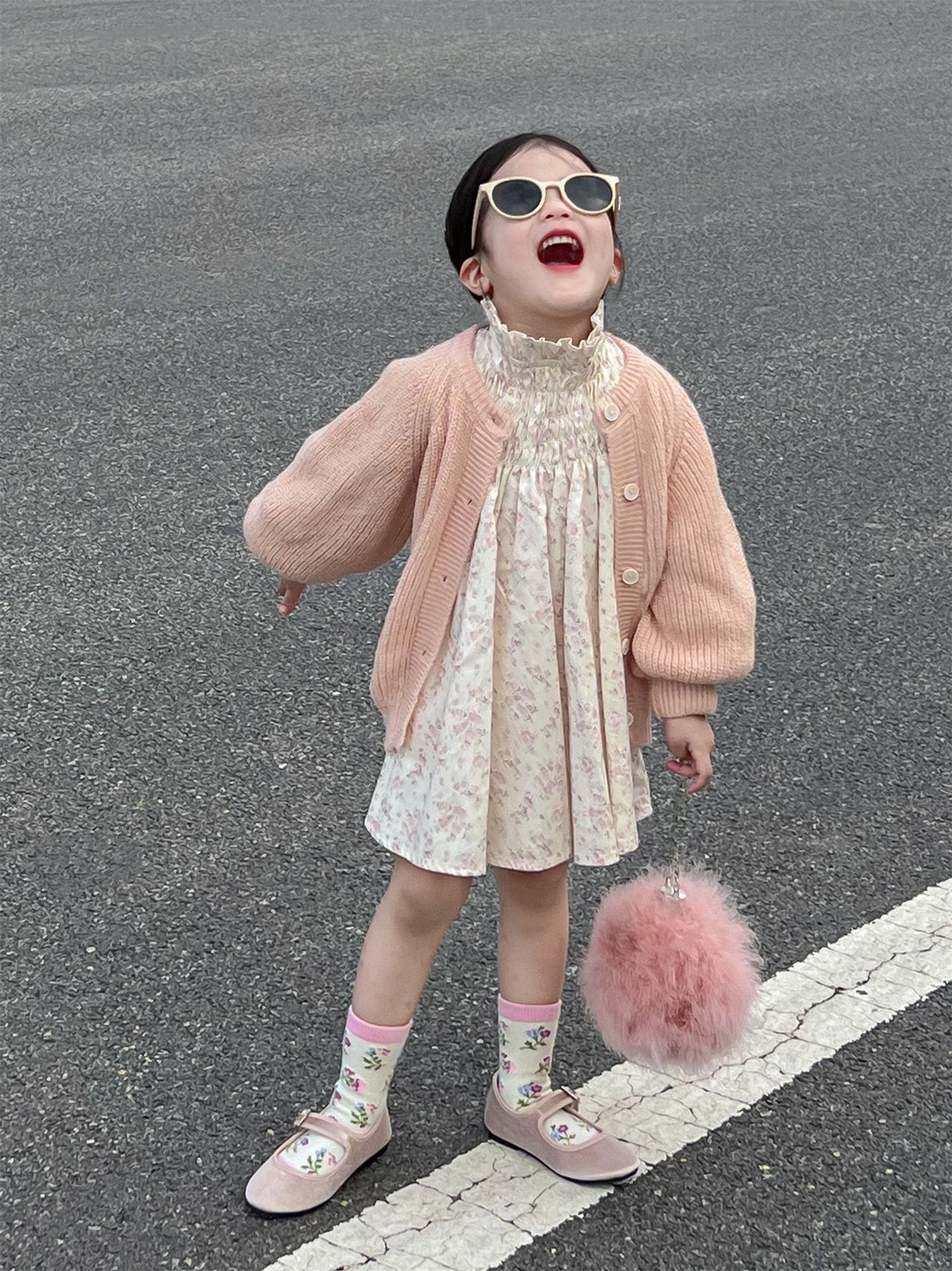 2026 봄 신상품 한국 스타일 아동복 여아용 달콤한 핑크색 루즈핏 가디건 니트 코트 스웨터스토어 가기