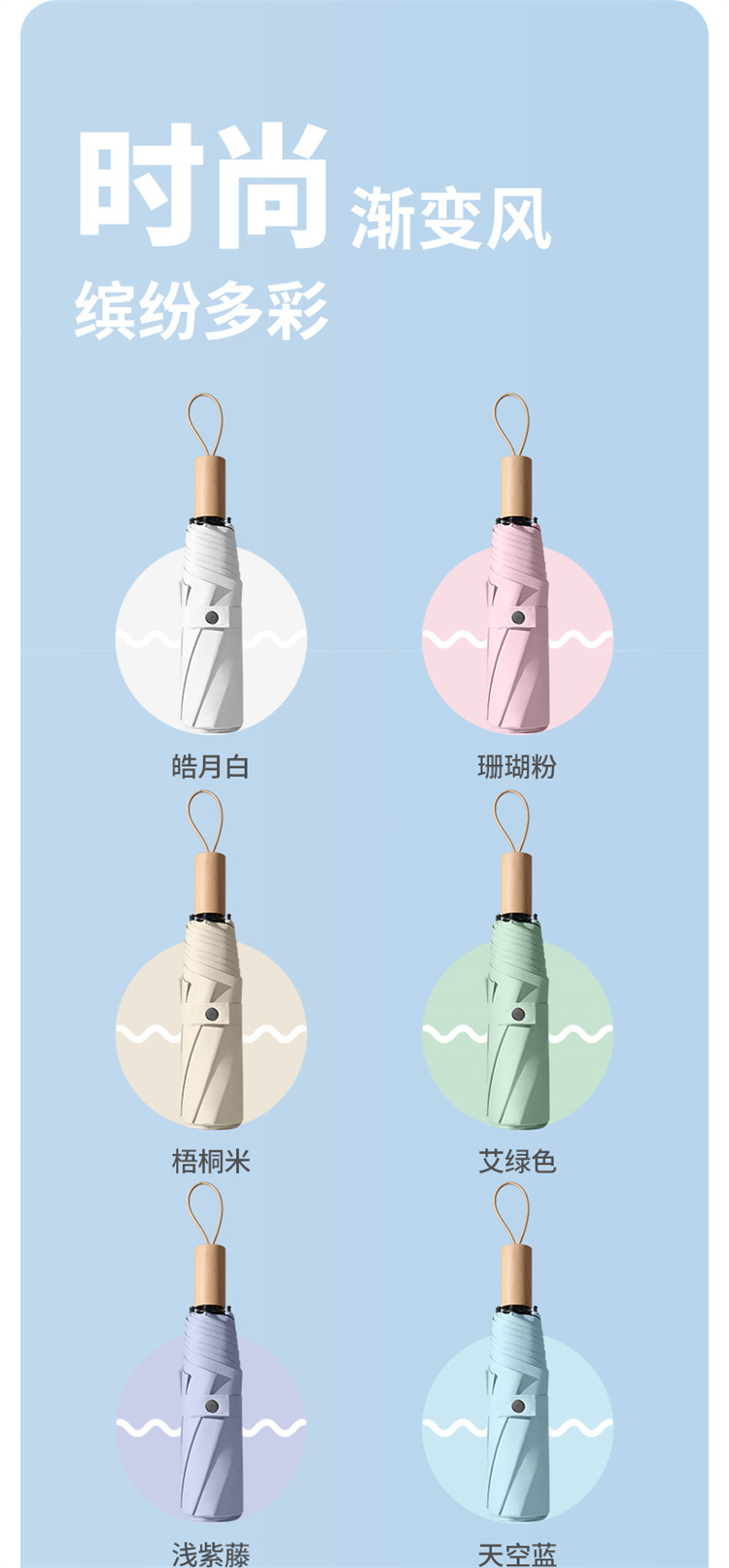 3 배 우산 도매 단색 간단한 접이식 우산 검은 접착제 태양 보호 우산 인쇄 가능한 로고 단단한 나무 손잡이 태양 우산