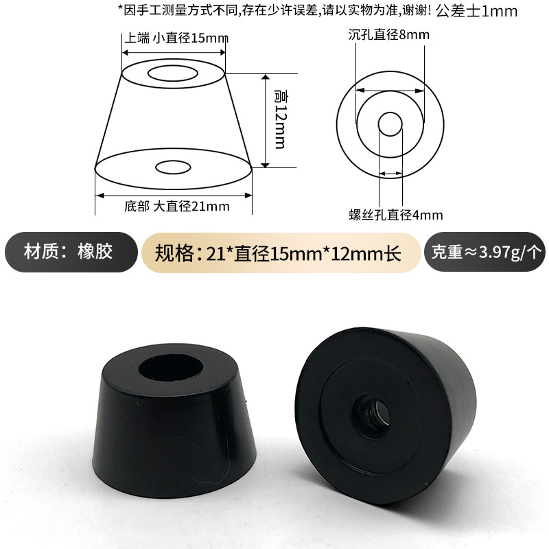 • Φ 21 × 15 × 12mm [개스킷 포함] 블랙 * 고무