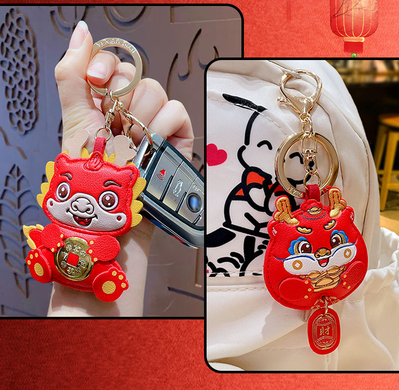 만화 용 년 마스코트 키 체인 인형 펜던트 자동차 가방 키 체인 장식품 창조적 인 새해 작은 선물