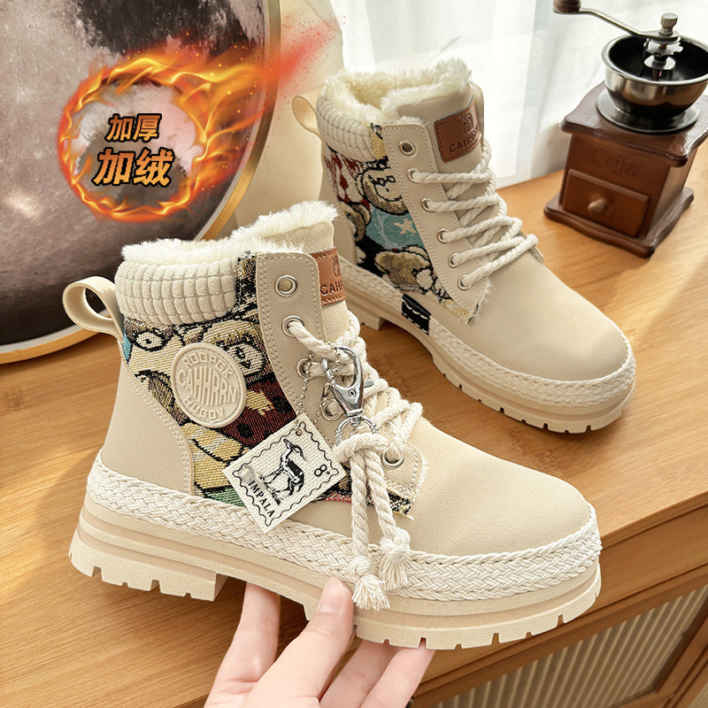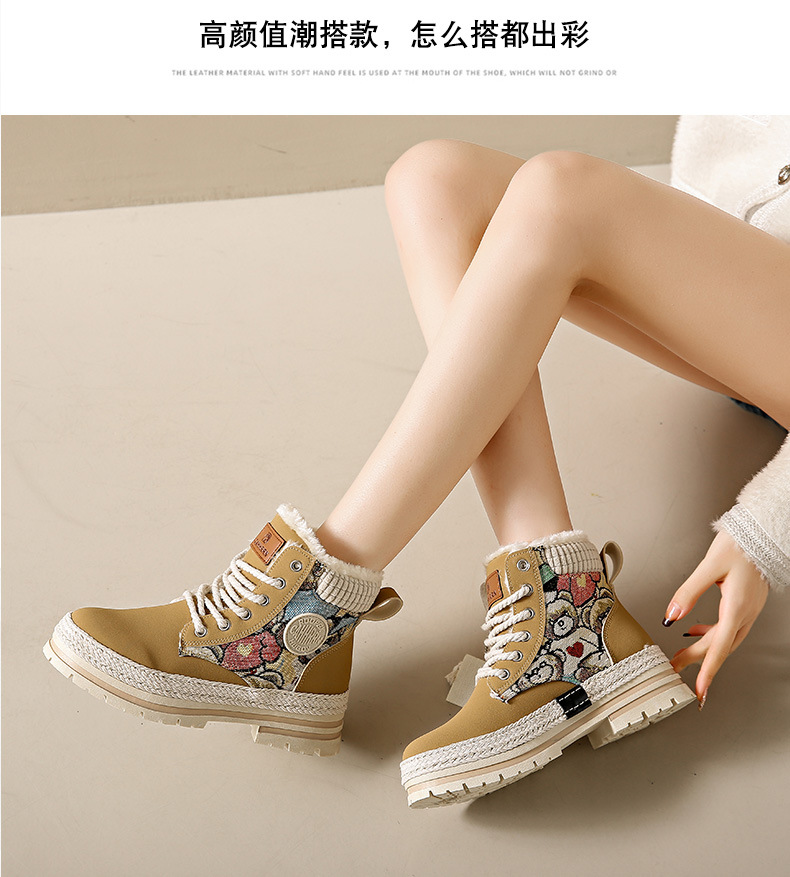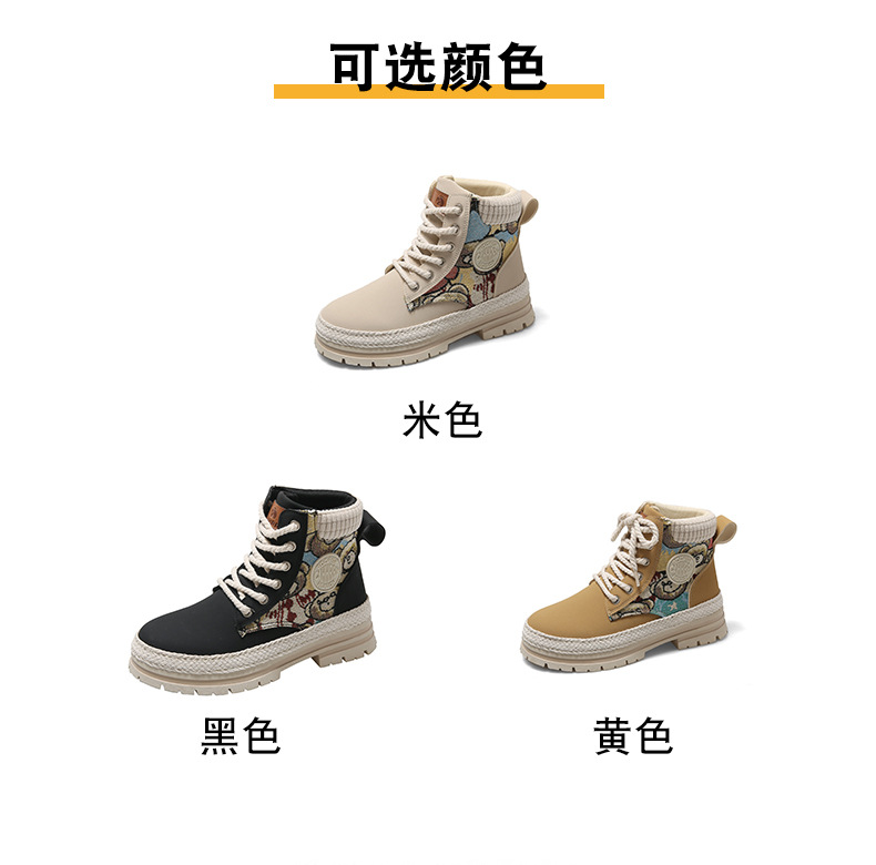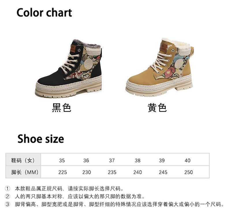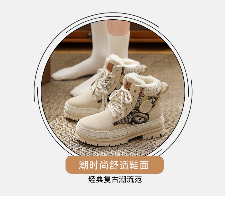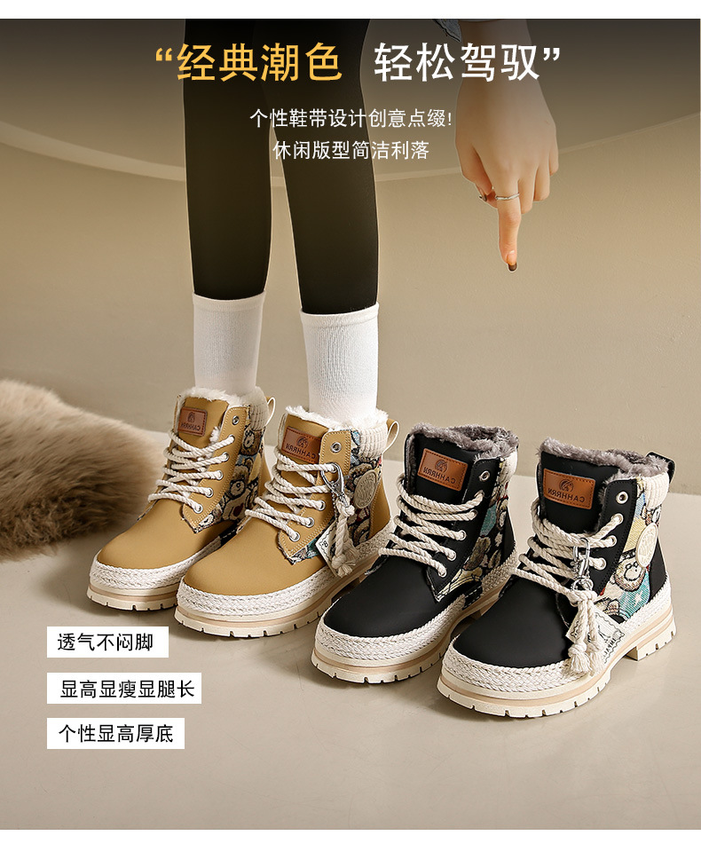 여성용 마틴 부츠, 가을 겨울 영국 스타일, 발을 작아 보이게 하는 미들 부츠, 트렌디한 숏부츠, 기모 안감, 면화 신발, 작업복 스타일, 키높이 효과