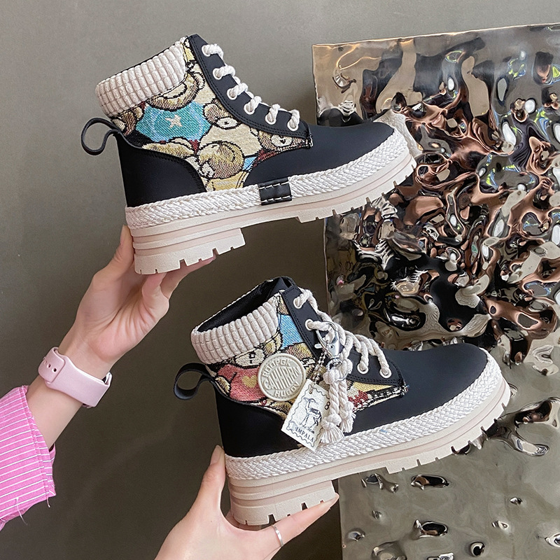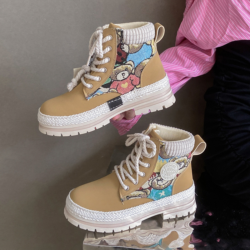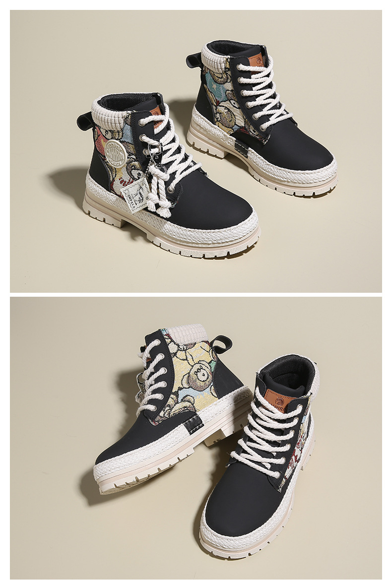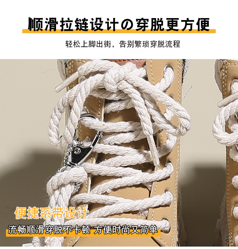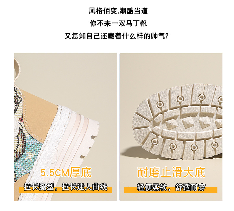 여성용 마틴 부츠, 가을 겨울 영국 스타일, 발을 작아 보이게 하는 미들 부츠, 트렌디한 숏부츠, 기모 안감, 면화 신발, 작업복 스타일, 키높이 효과