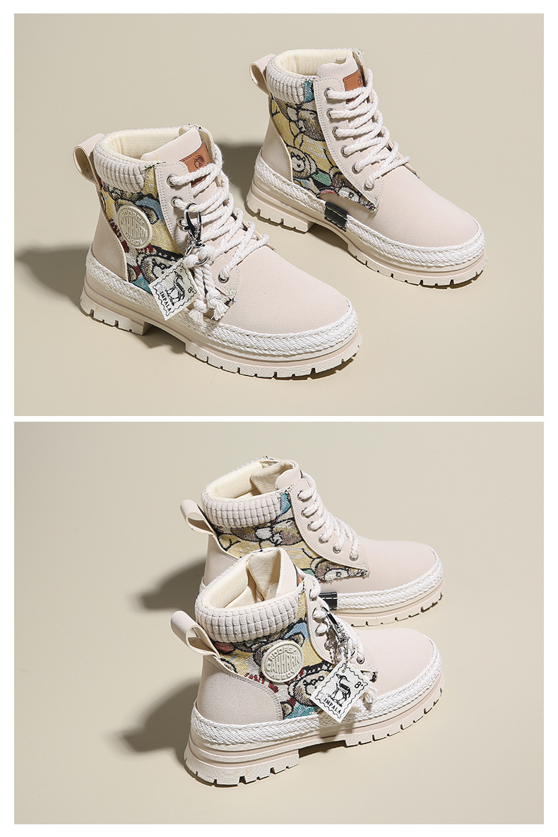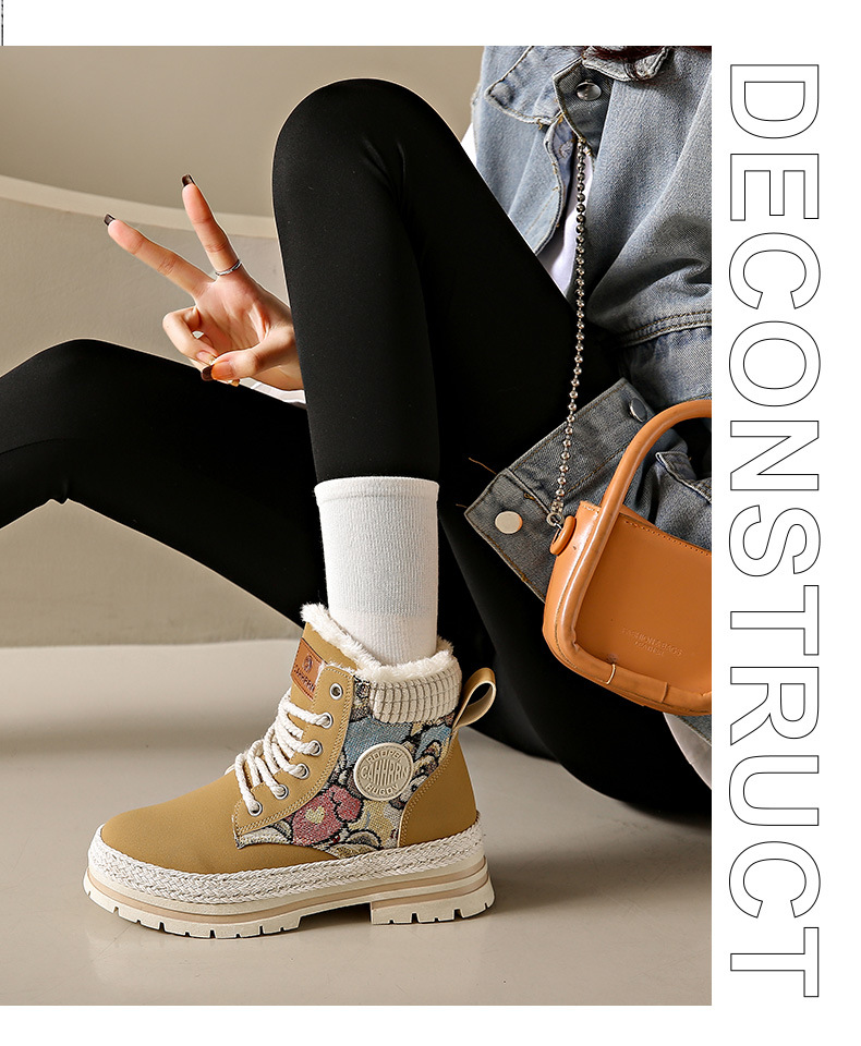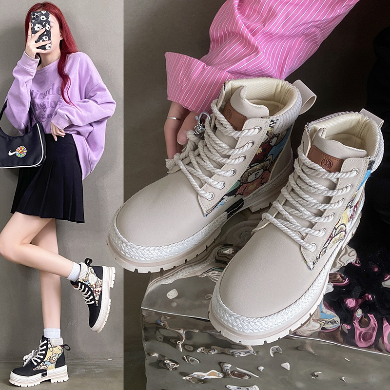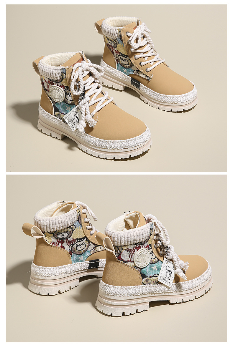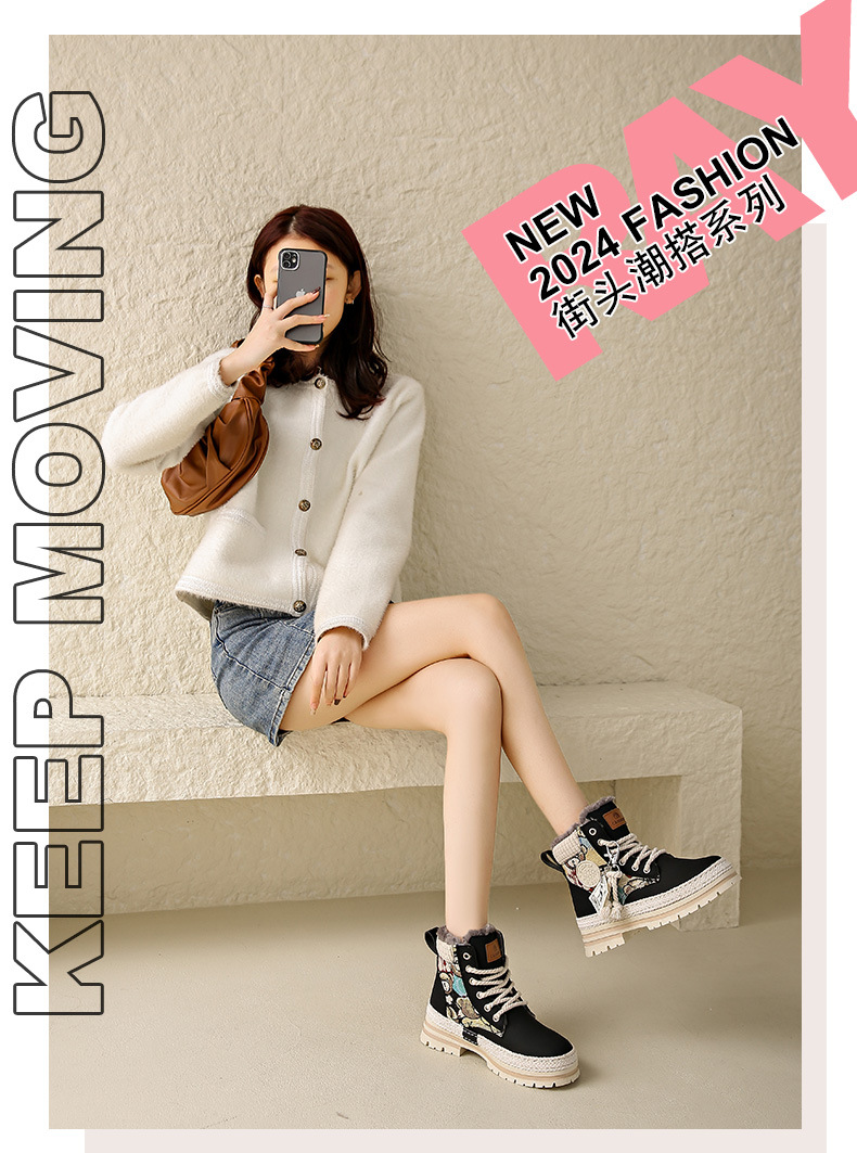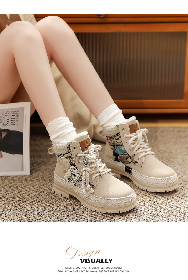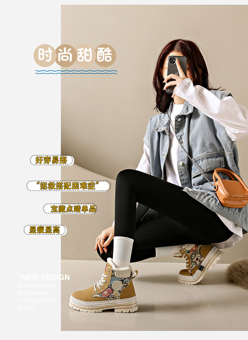 여성용 마틴 부츠, 가을 겨울 영국 스타일, 발을 작아 보이게 하는 미들 부츠, 트렌디한 숏부츠, 기모 안감, 면화 신발, 작업복 스타일, 키높이 효과스토어 가기