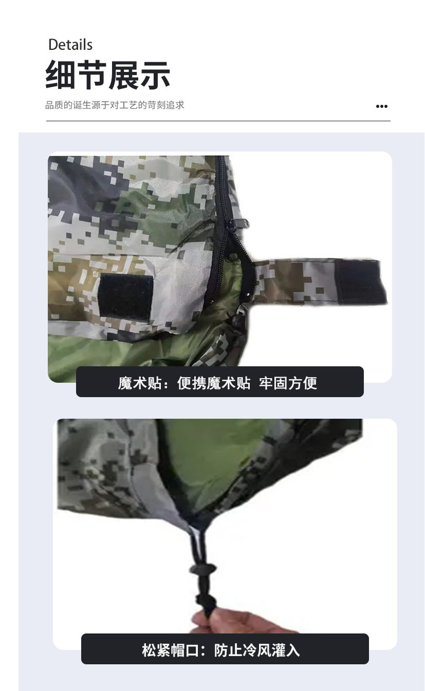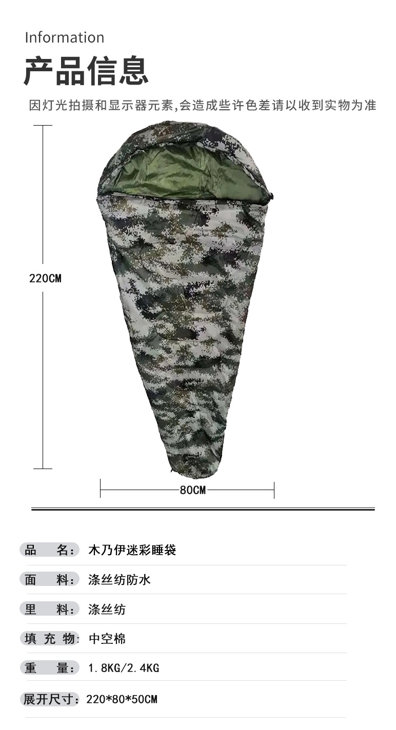 야외 성인 휴대용 가을과 겨울 두꺼운 따뜻한 여행 비상 위장 잠자기 가방 캠핑 미라 슬리핑 백