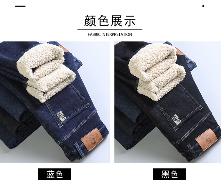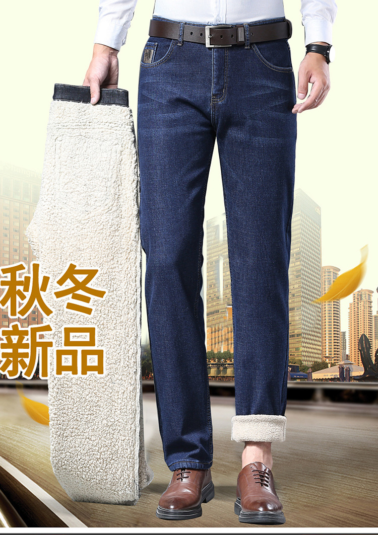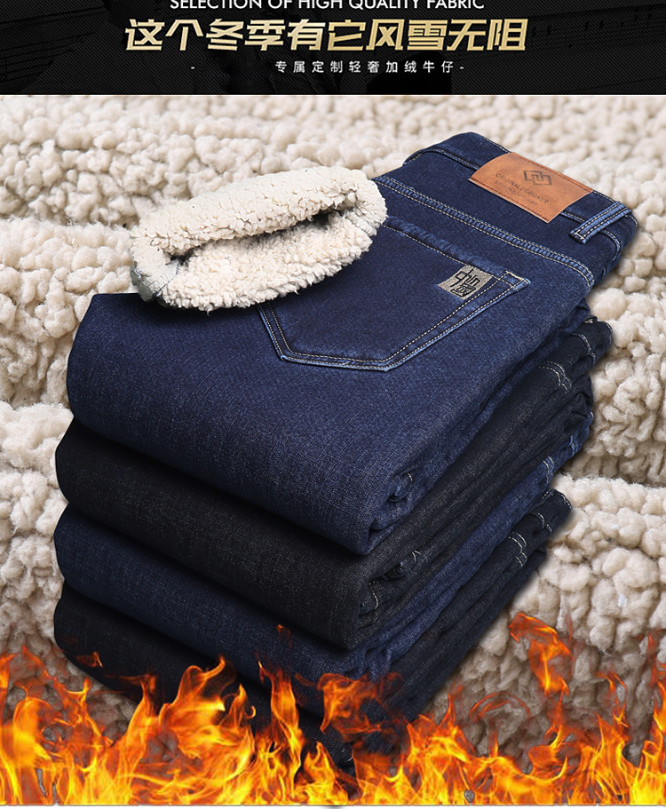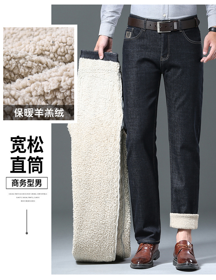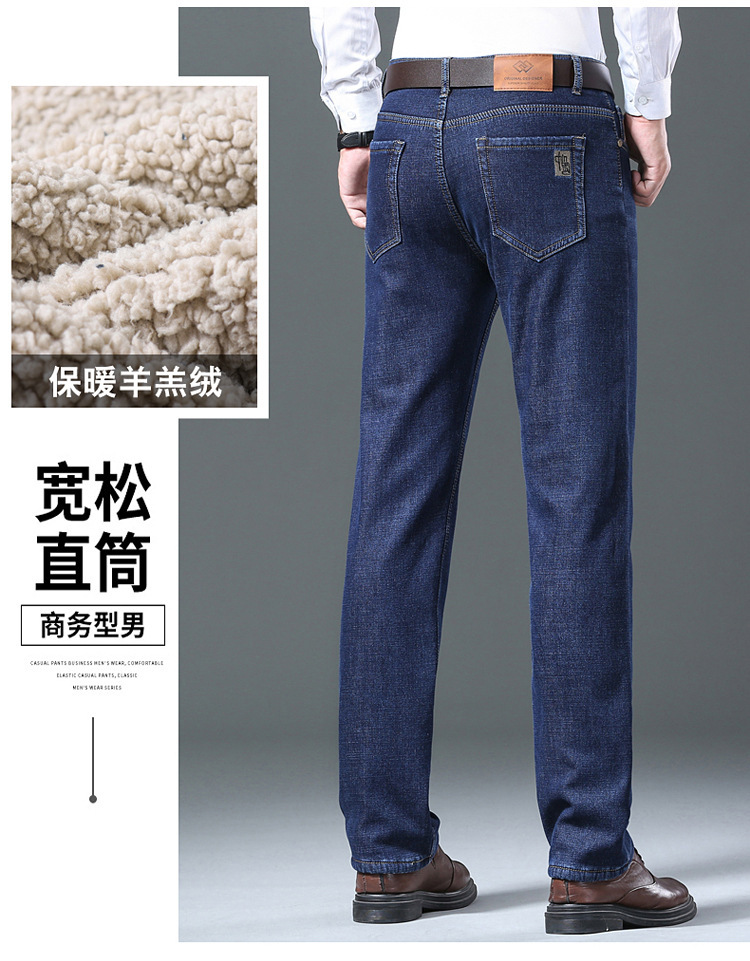 겨울 남성 청바지 기모 두꺼운 느슨한 높은 허리 스트레이트 플러스 사이즈 캐주얼 바지 내구성 작업 따뜻한면 바지스토어 가기