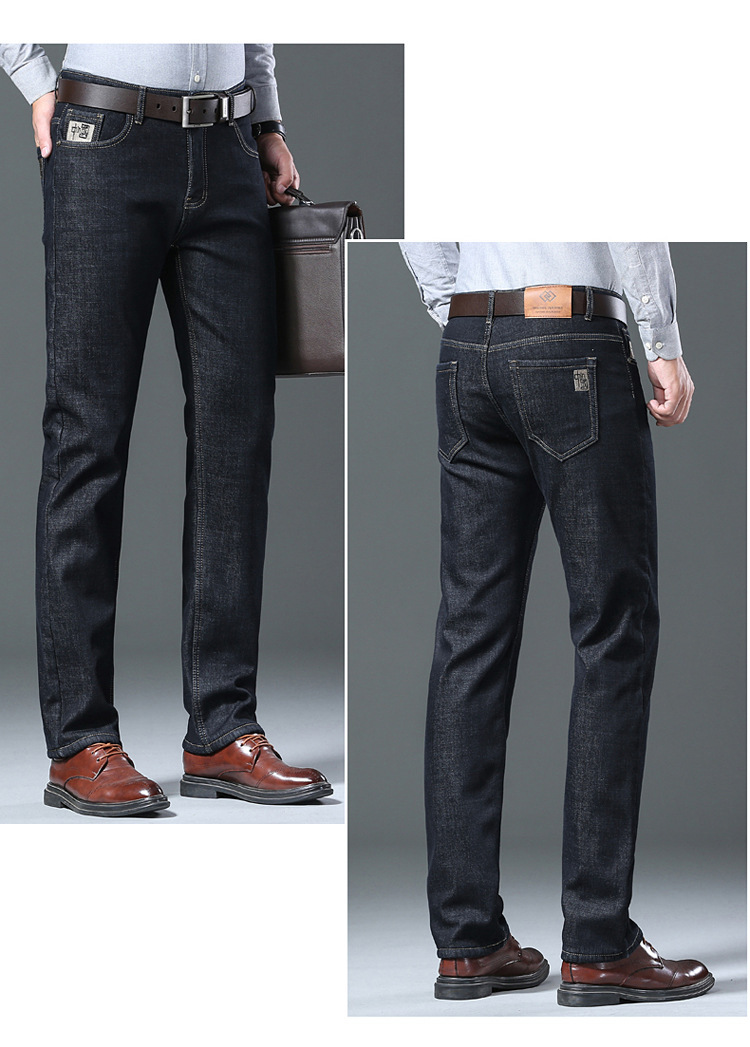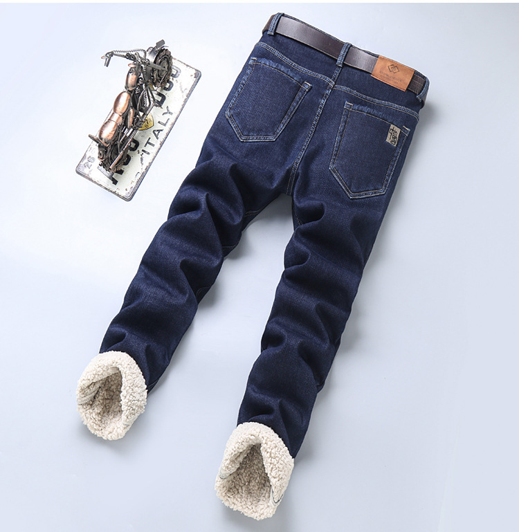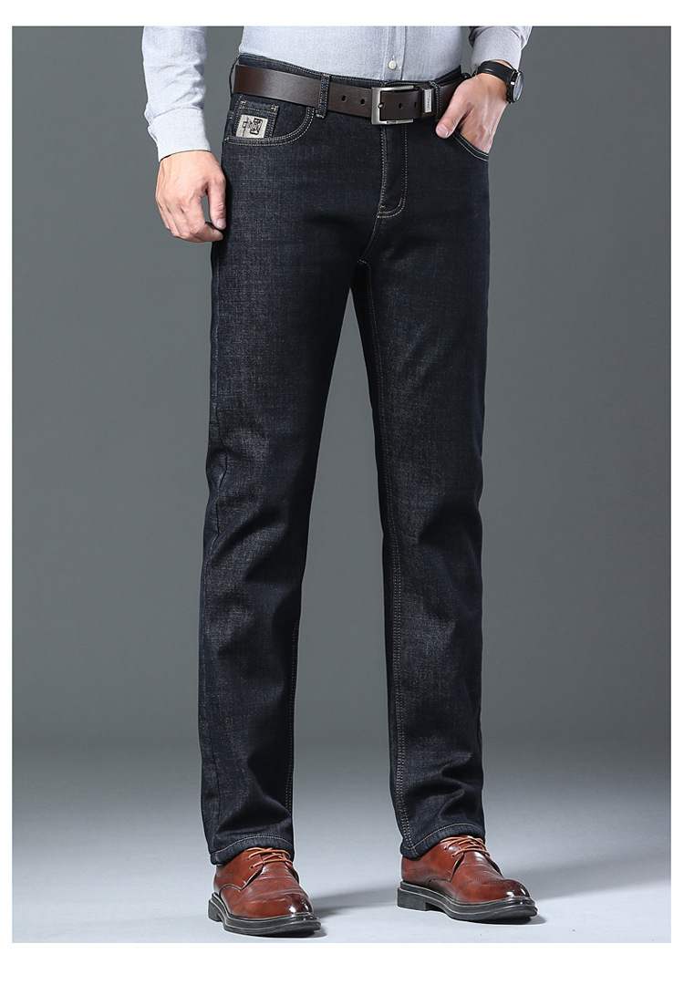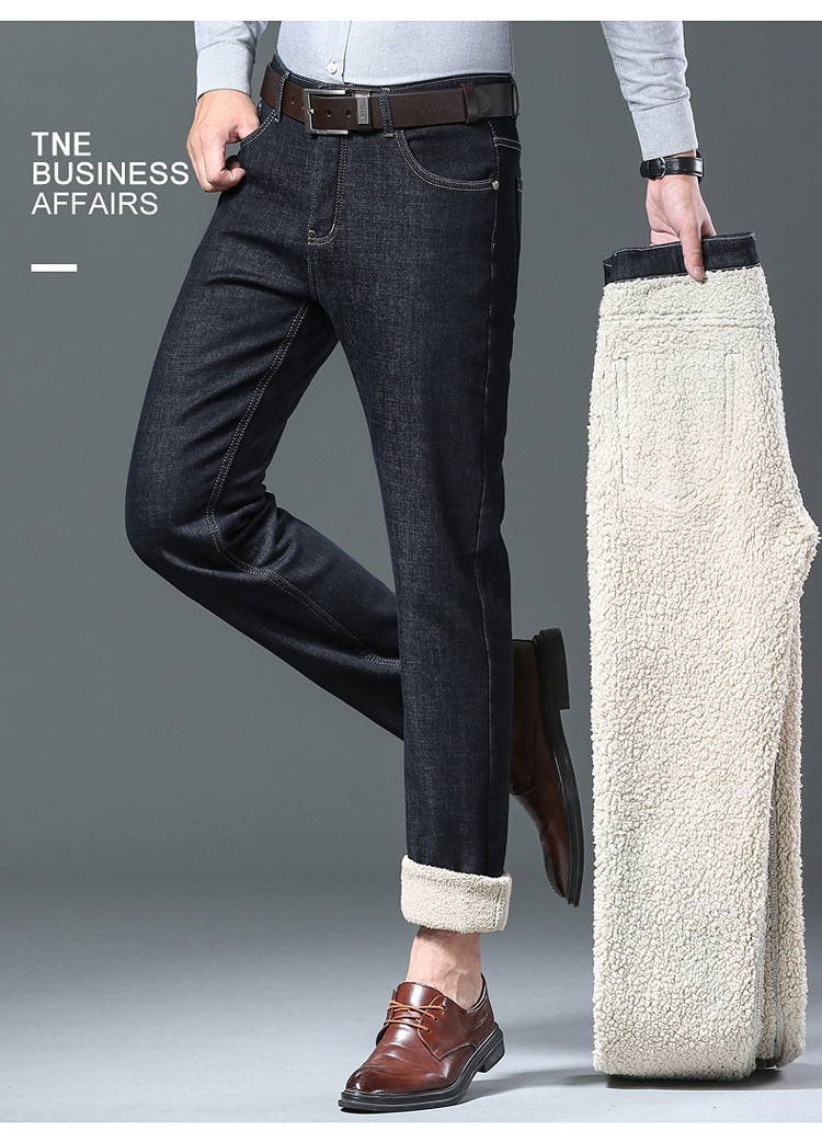 겨울 남성 청바지 기모 두꺼운 느슨한 높은 허리 스트레이트 플러스 사이즈 캐주얼 바지 내구성 작업 따뜻한면 바지스토어 가기