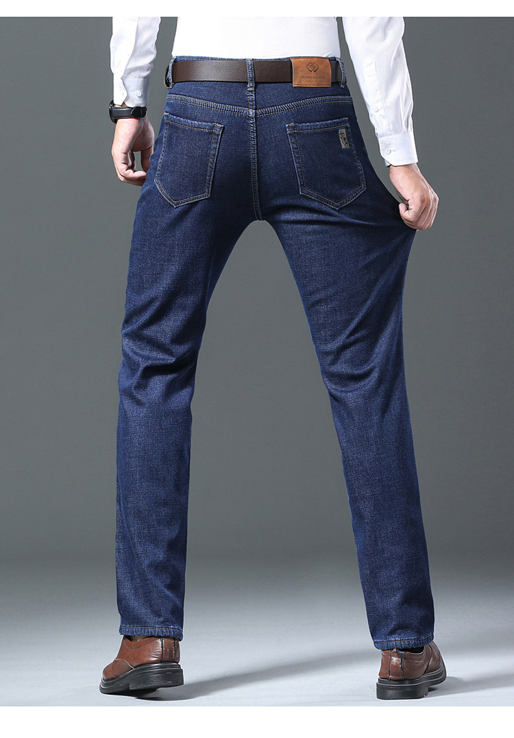 겨울 남성 청바지 기모 두꺼운 느슨한 높은 허리 스트레이트 플러스 사이즈 캐주얼 바지 내구성 작업 따뜻한면 바지