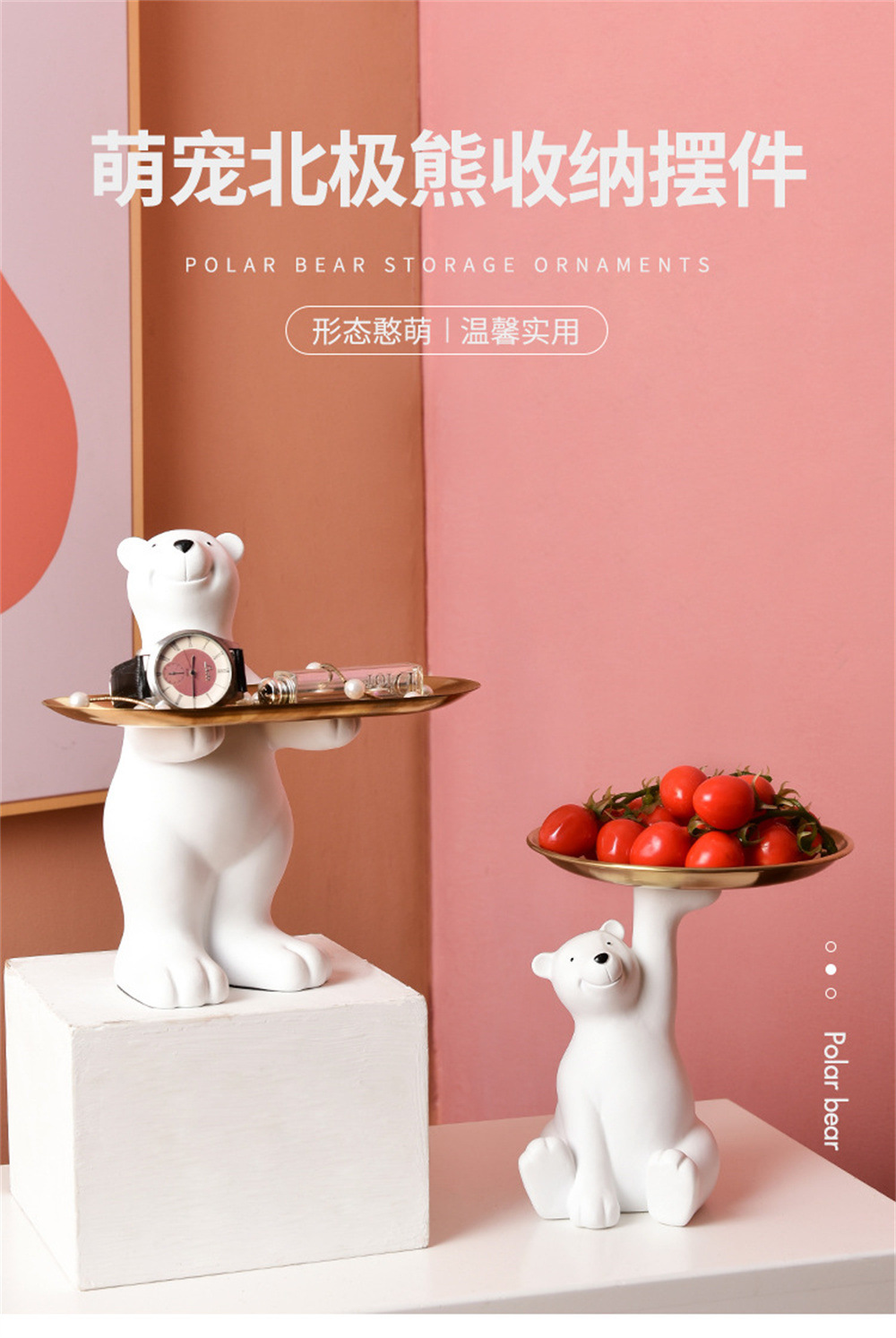 창조적 인 북극곰 데스크탑 과일 화장품 키 저장 트레이 장식 거실 현관 홈 아트 장식