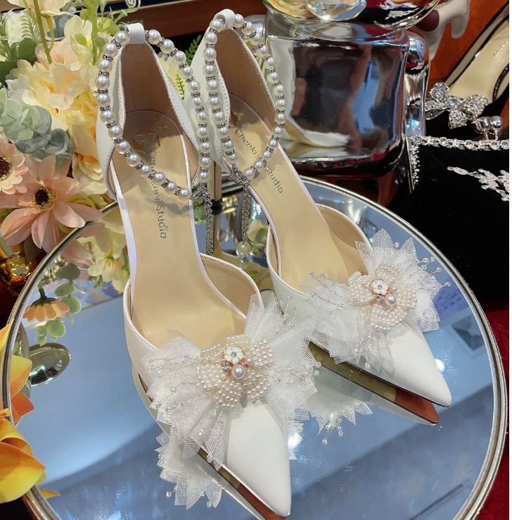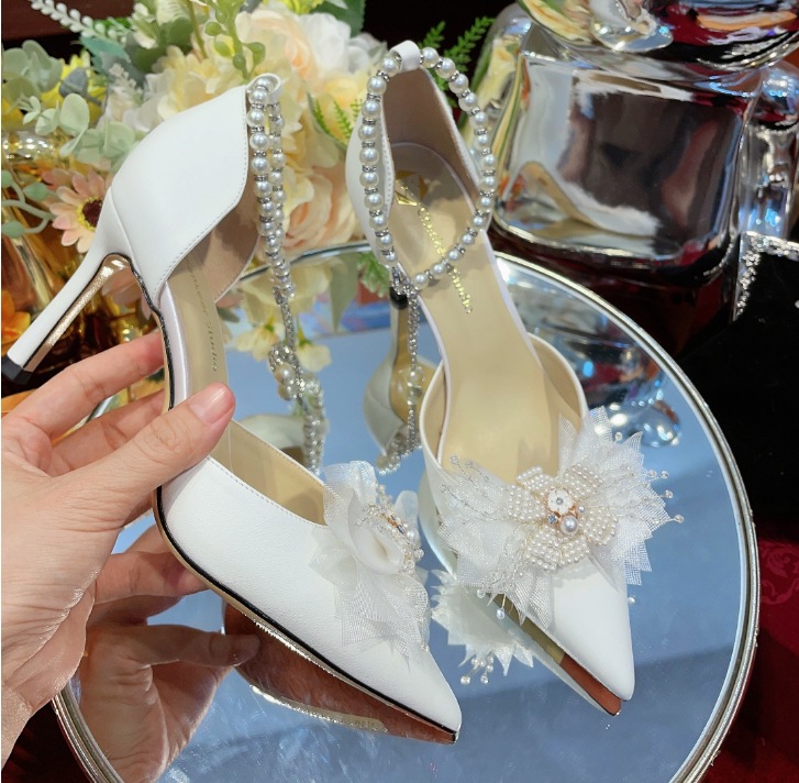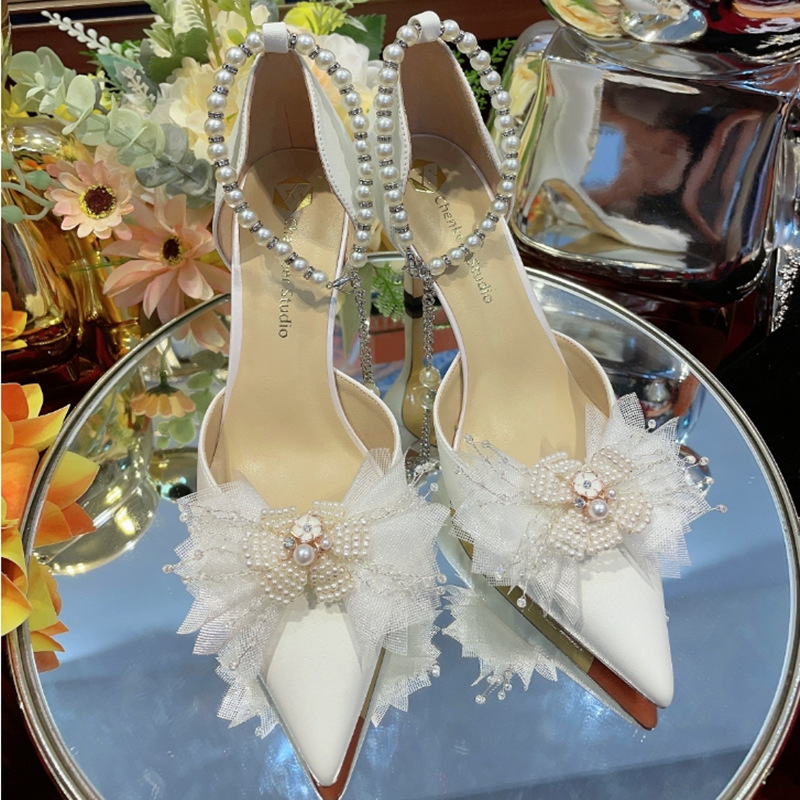 프랑스 웨딩 신발 Xiuhe 메인 웨딩 원피스 중공 신부 신발 피곤하지 않은 발 2023 새로운 흰색 하이힐 스틸레토 힐