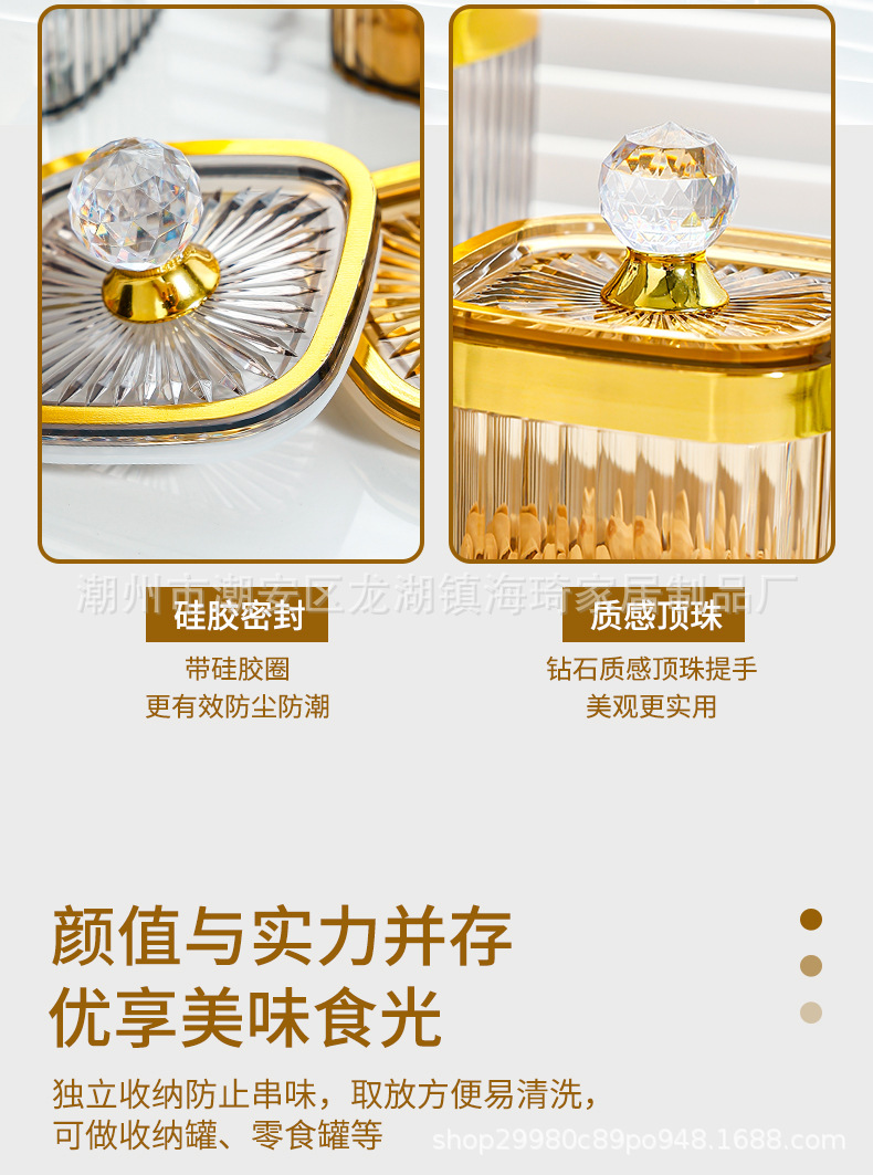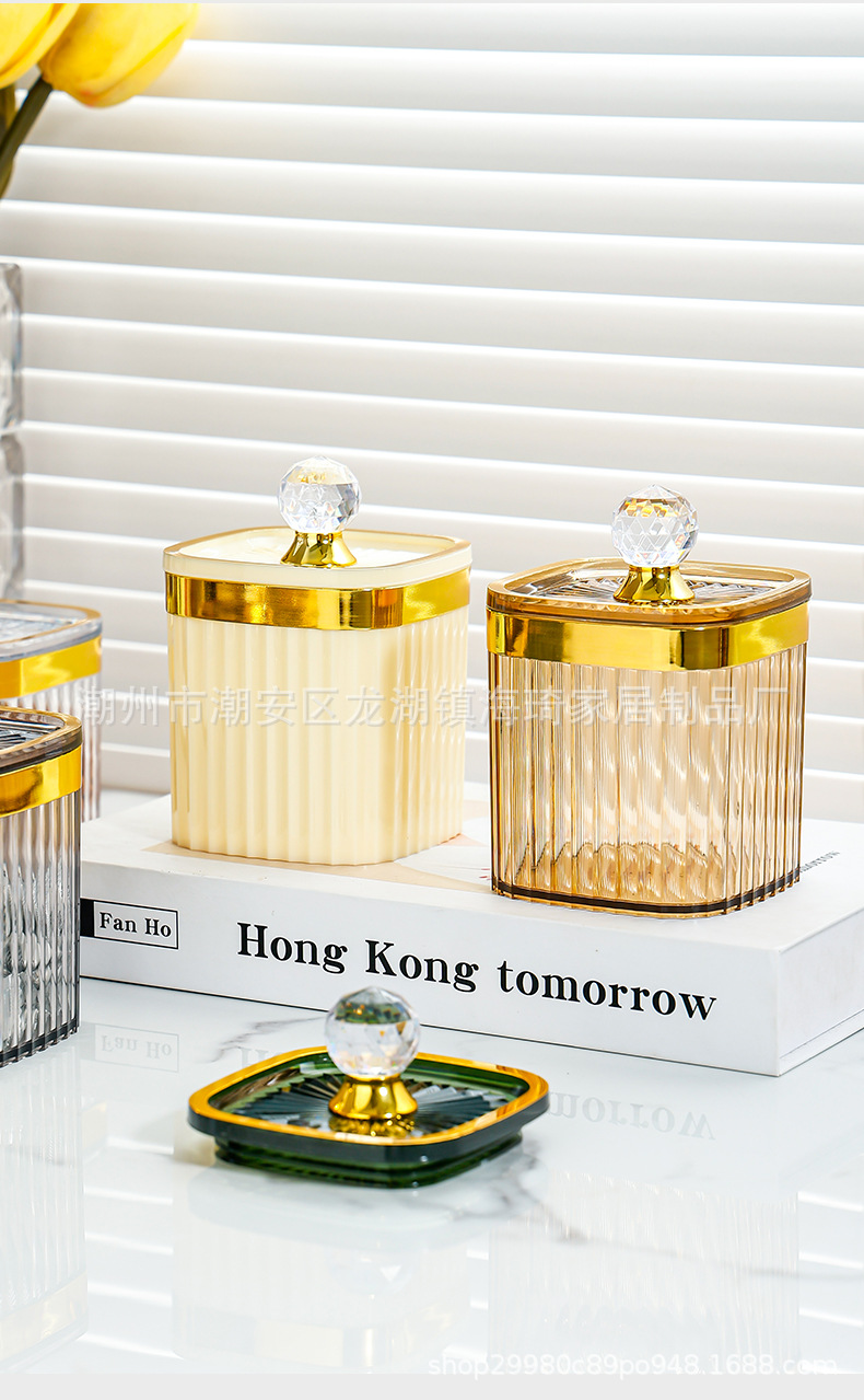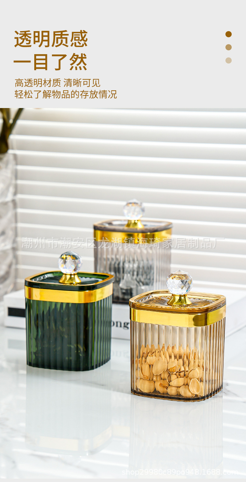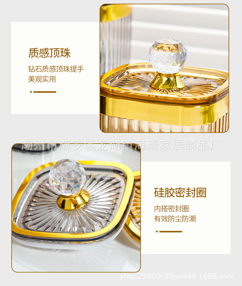 • 큰 다이아몬드 투명한 황금 가장자리 봉인 된 사각형 항아리