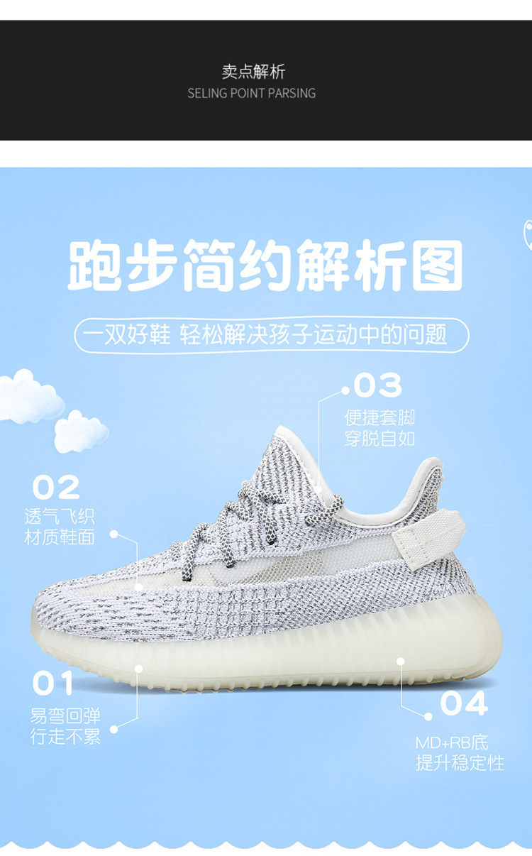 儿童椰子350正品童鞋满天星纯白黑天使yeezy过毒真爆网面运动跑鞋