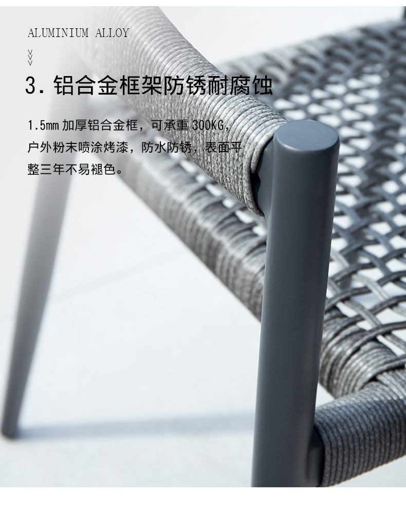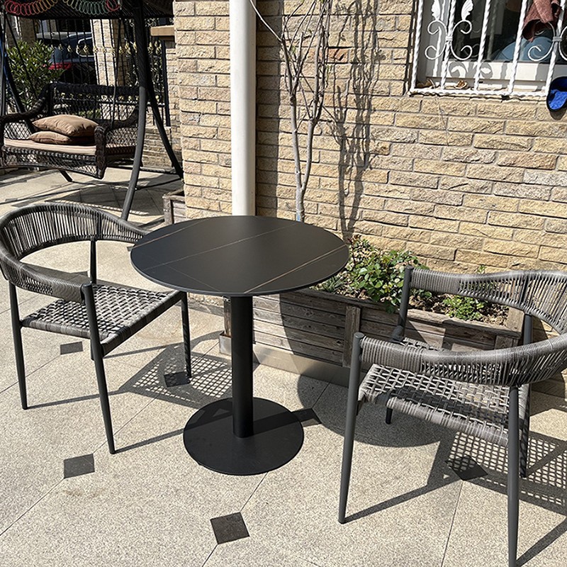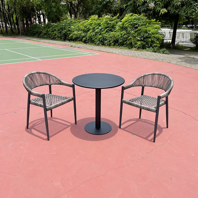 회색 알루미늄 합금 테이블과 의자 간단한 안뜰 커피 숍 밀크 티 숍 레저 야외 가구 조합 등나무 식탁과 의자스토어 가기