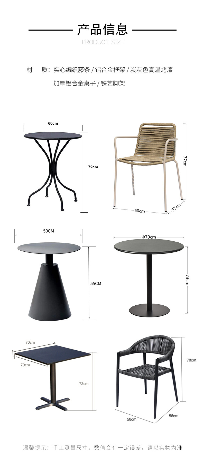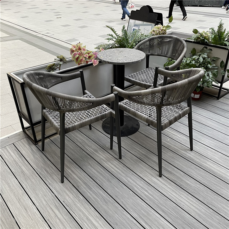 회색 알루미늄 합금 테이블과 의자 간단한 안뜰 커피 숍 밀크 티 숍 레저 야외 가구 조합 등나무 식탁과 의자