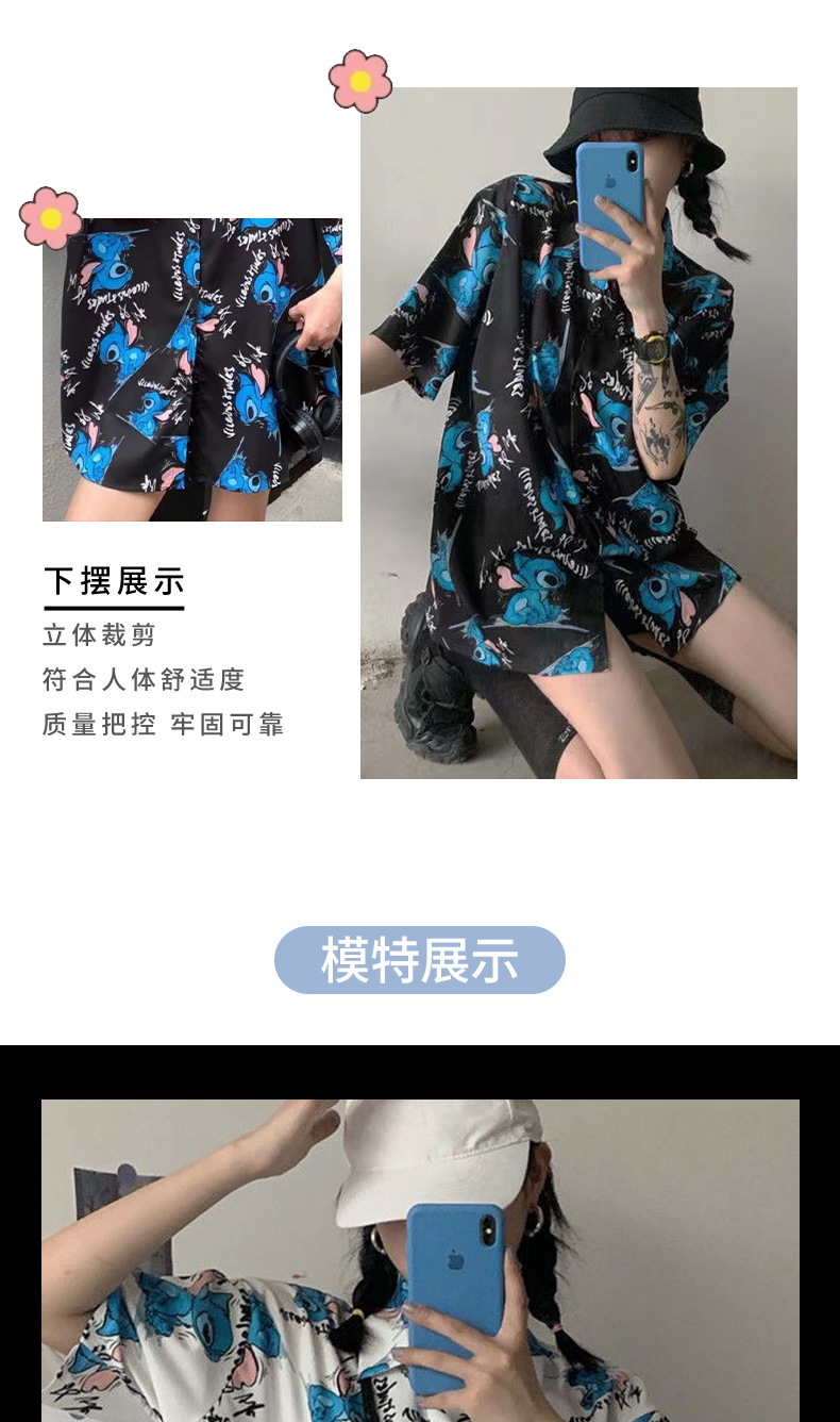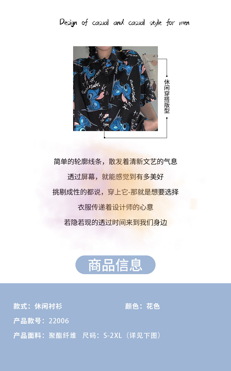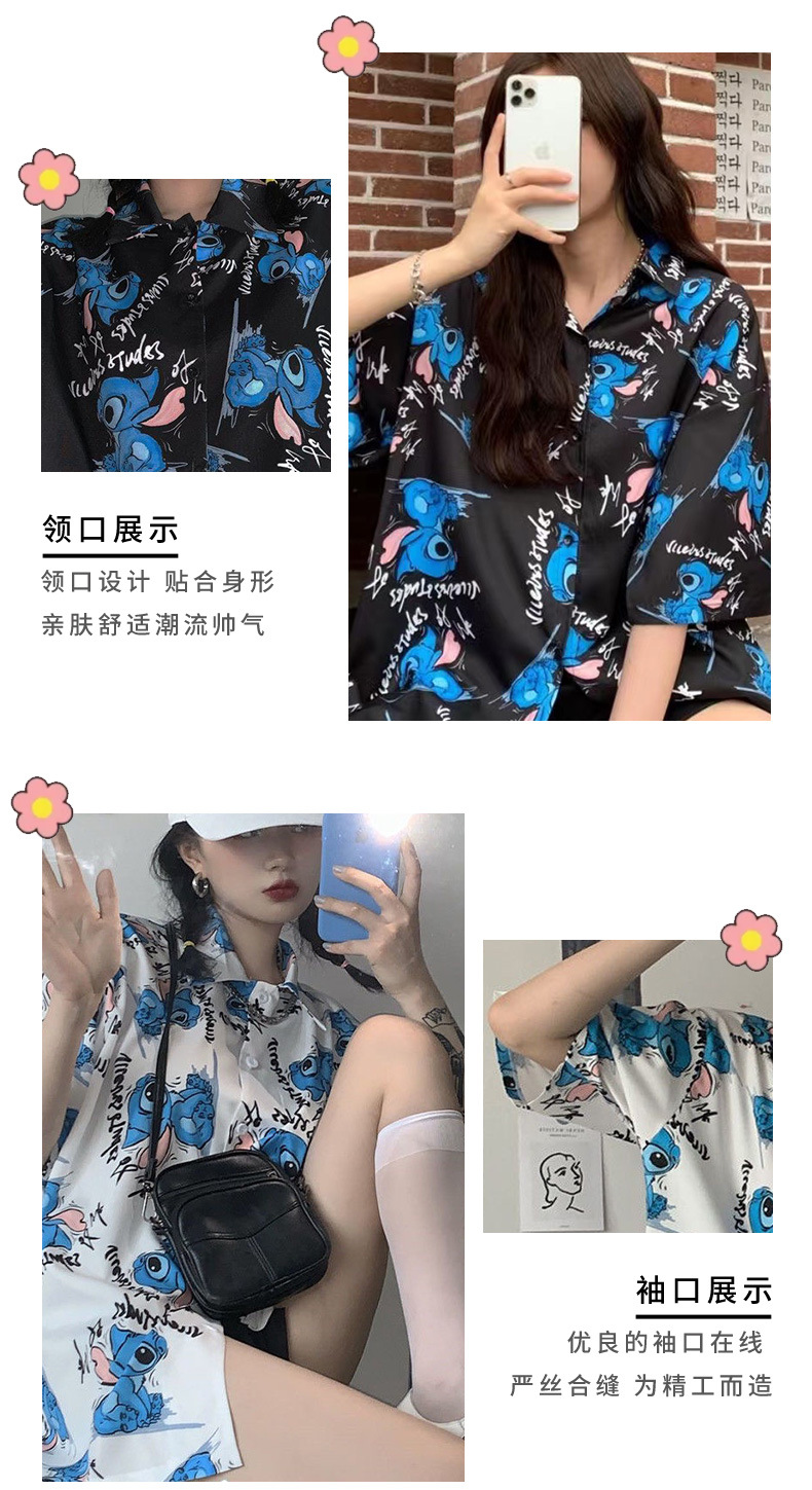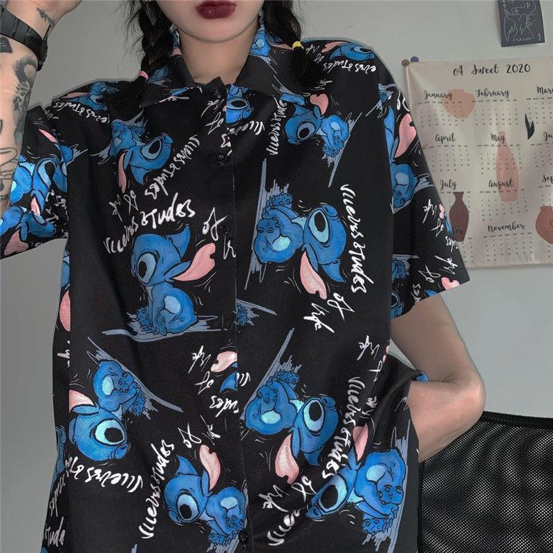 셔츠 여성 여성 디자인 감각 틈새 짧은 소매 새로운 여름 얇은 한국 스타일 느슨한 만화 인쇄 셔츠스토어 가기