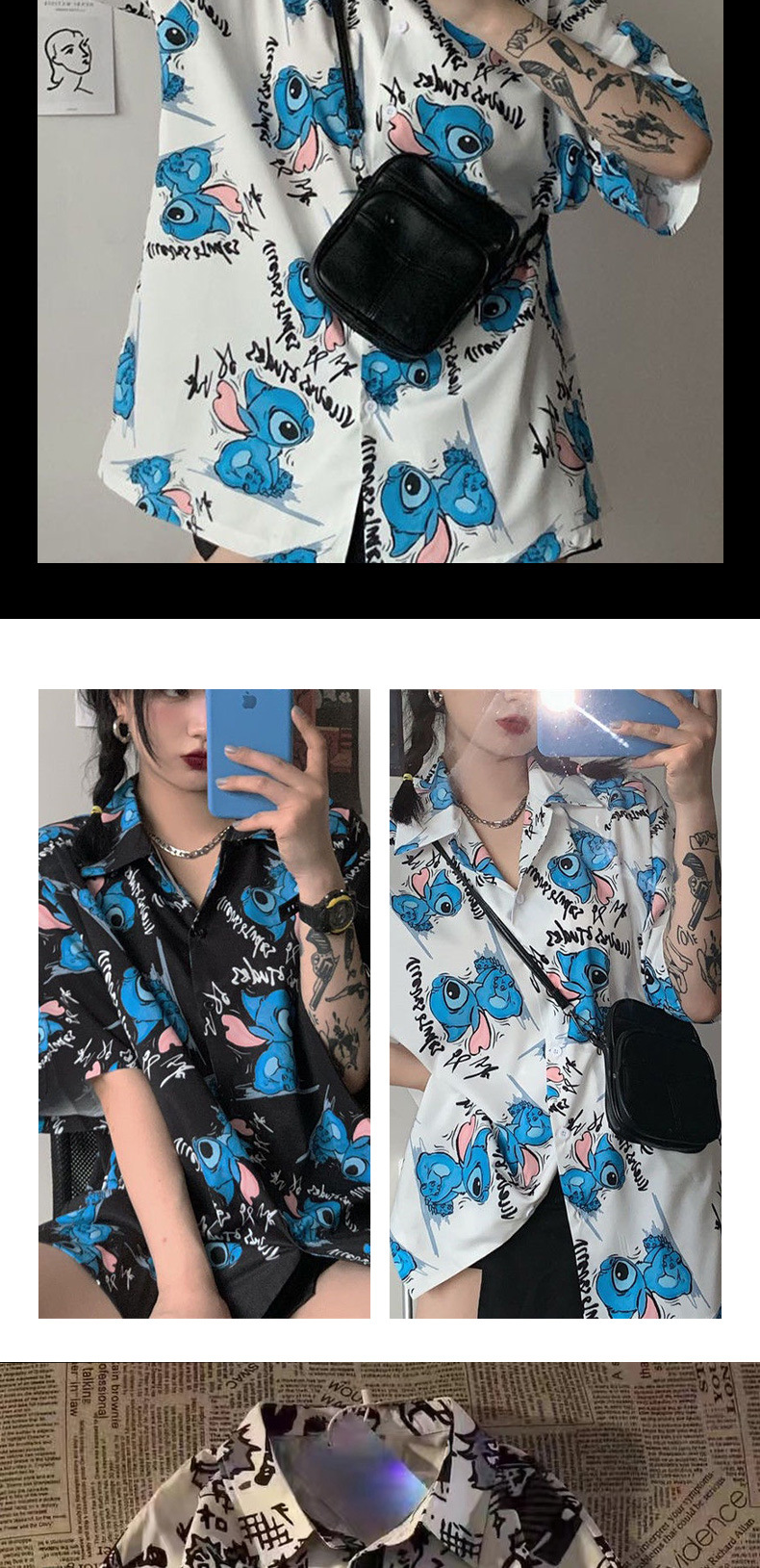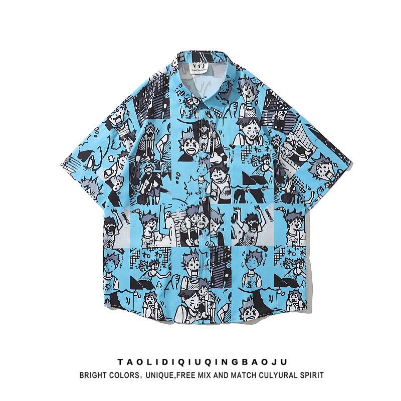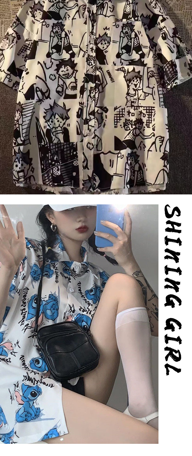 셔츠 여성 여성 디자인 감각 틈새 짧은 소매 새로운 여름 얇은 한국 스타일 느슨한 만화 인쇄 셔츠스토어 가기