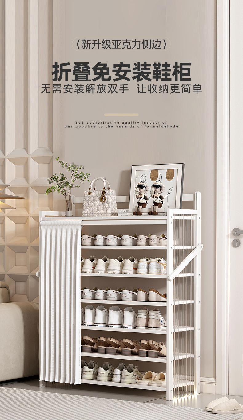 접는 신발 랙, 공간 절약형 다층 저장 랙, 아크릴 방진 설치 무료 신발 캐비닛 보관