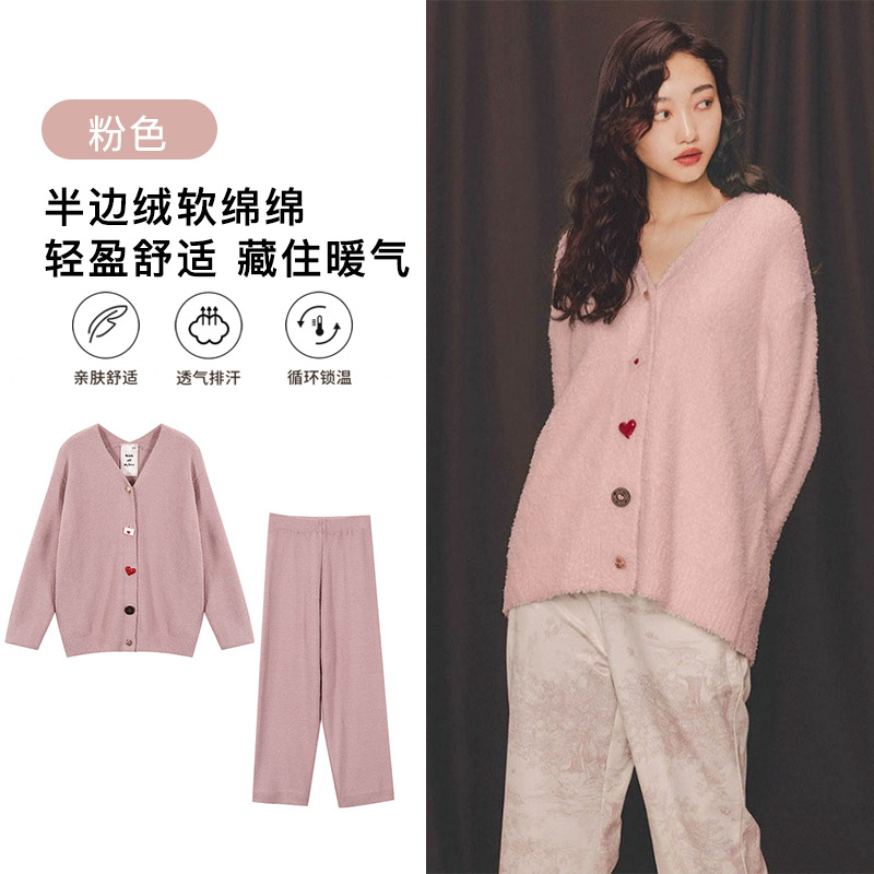 특가 초콜릿처럼 부드러운 반벨벳 두꺼운 보온 산후복 홈웨어 세트, 외출복으로도 착용 가능한 여성용 잠옷