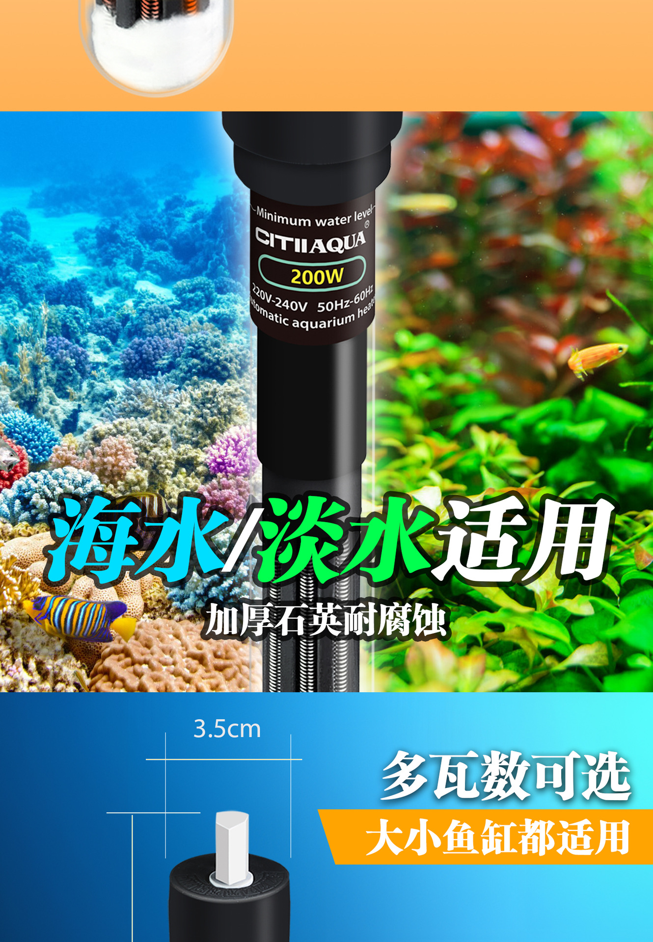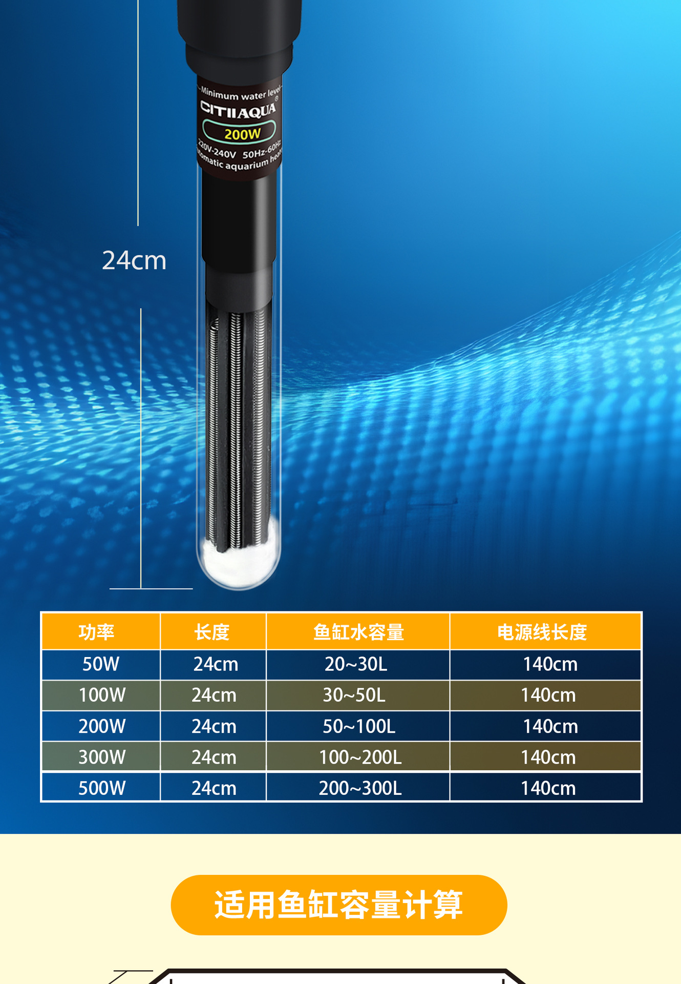 CITIIAQUA 어항 가열 막대 자동 일정한 온도 절전 히터 석영 폭발 방지 거북이 탱크 가열 막대스토어 가기
