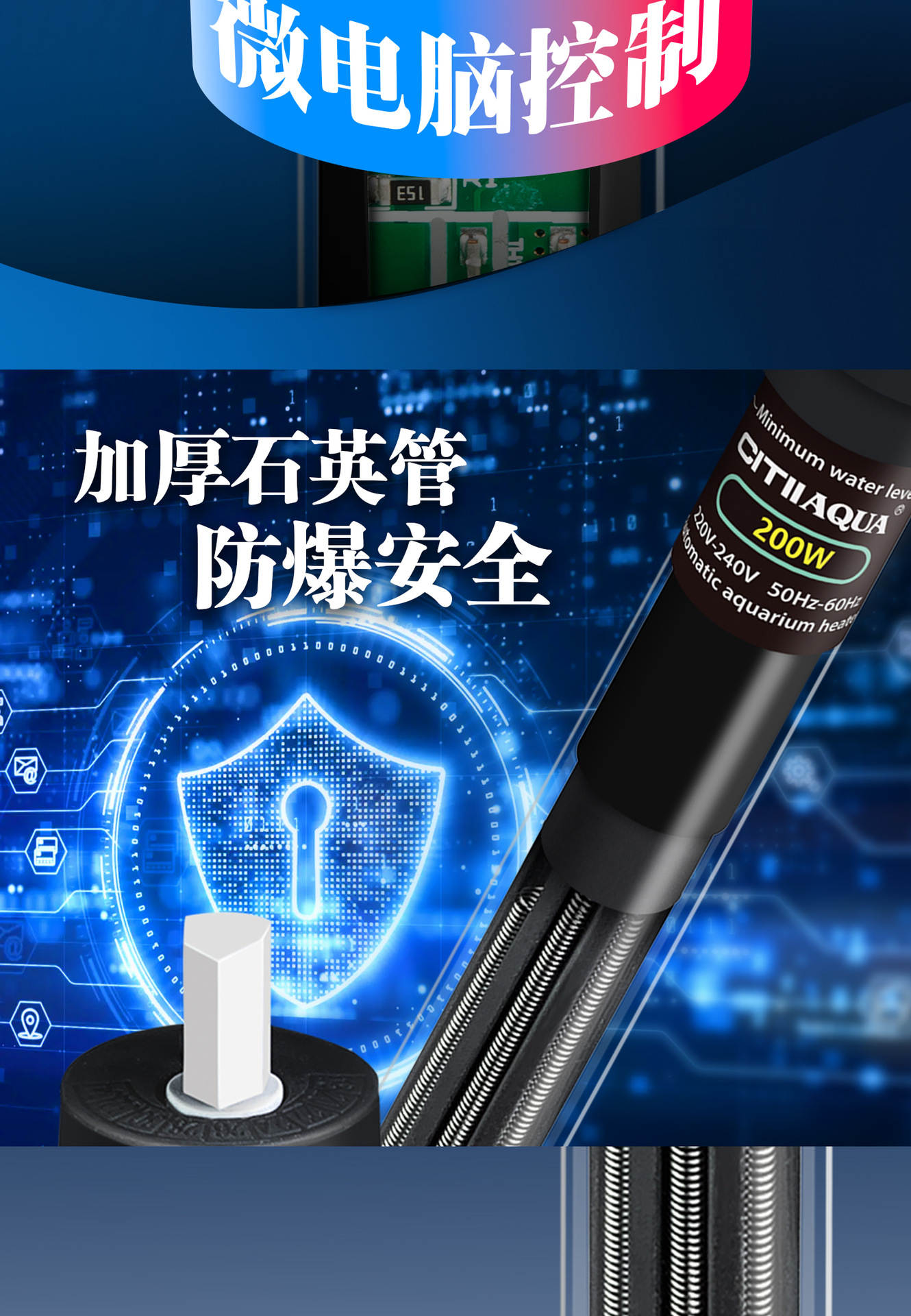 CITIIAQUA 어항 가열 막대 자동 일정한 온도 절전 히터 석영 폭발 방지 거북이 탱크 가열 막대