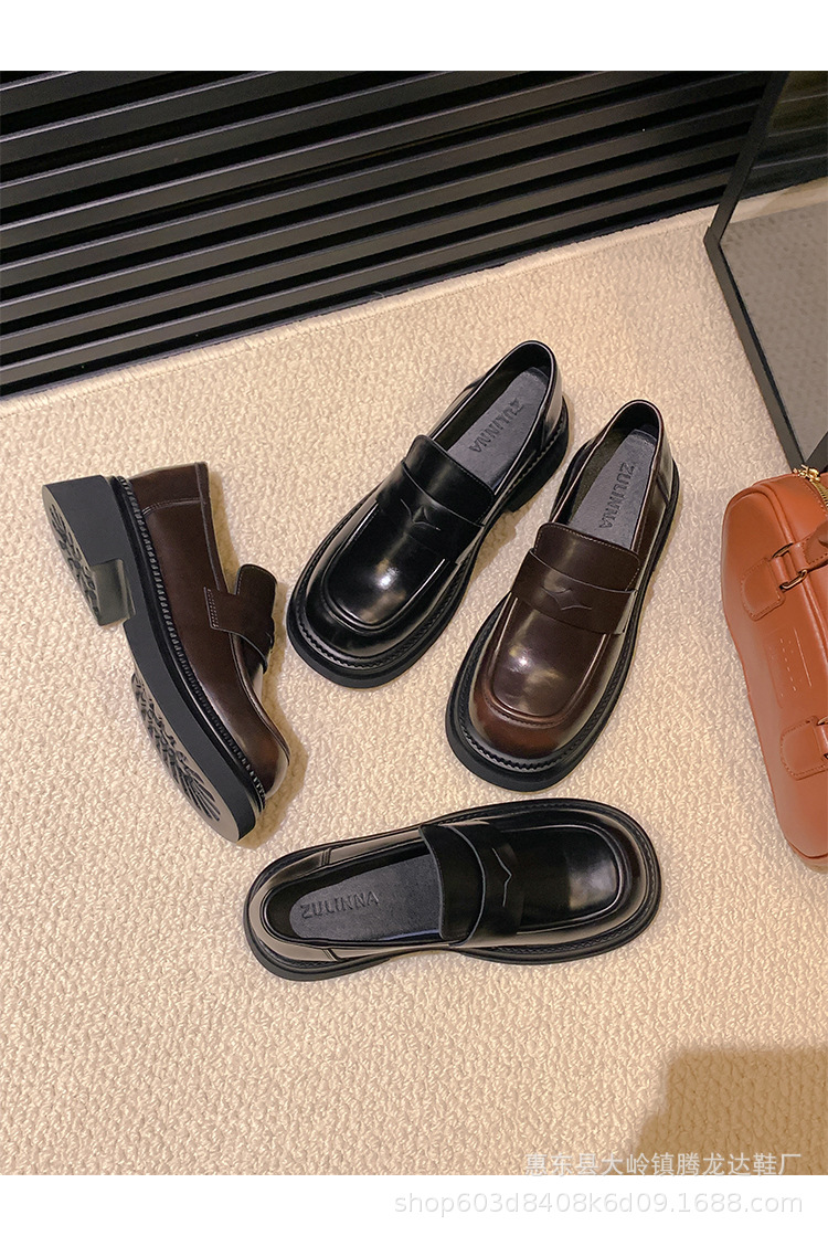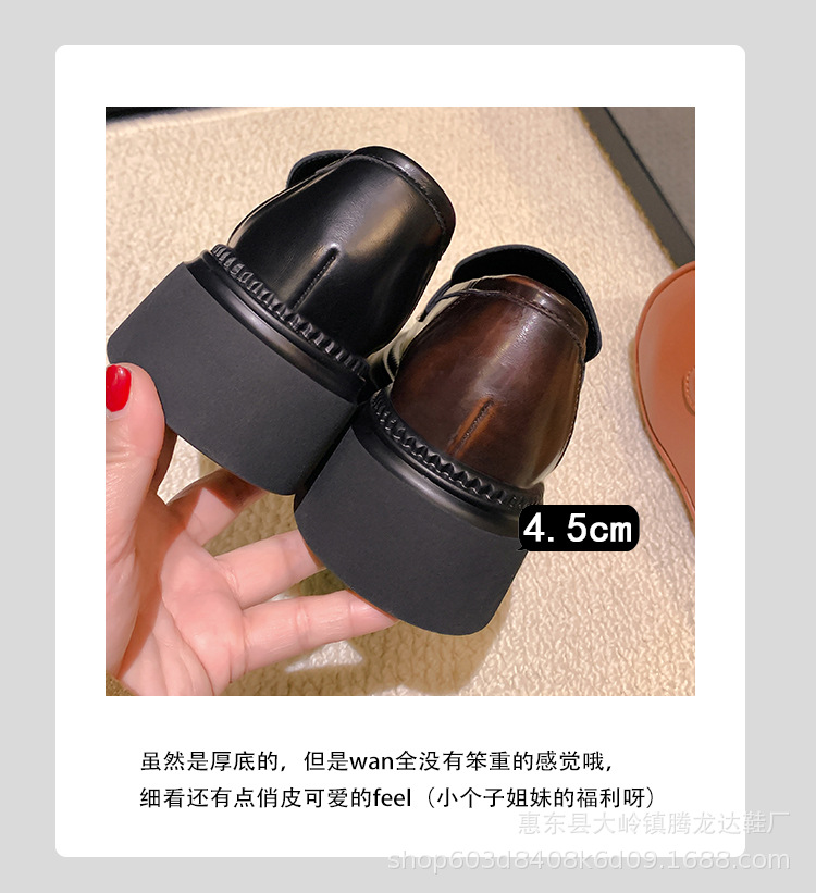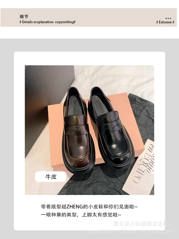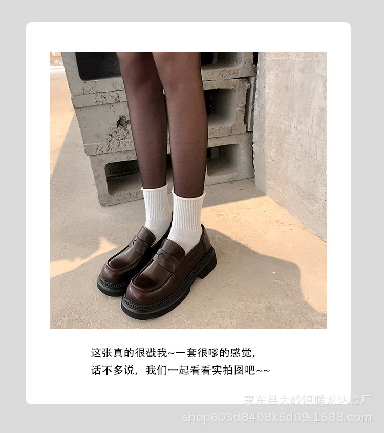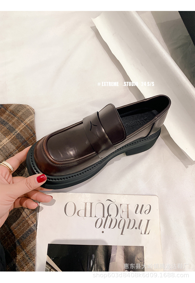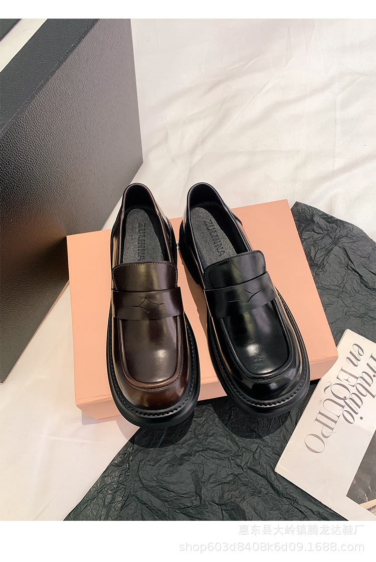 수인인과 같은 스타일의 여성용 가죽 두꺼운 밑창 로퍼, 가을 신상 레트로 영국풍 슬립온 가죽 신발스토어 가기