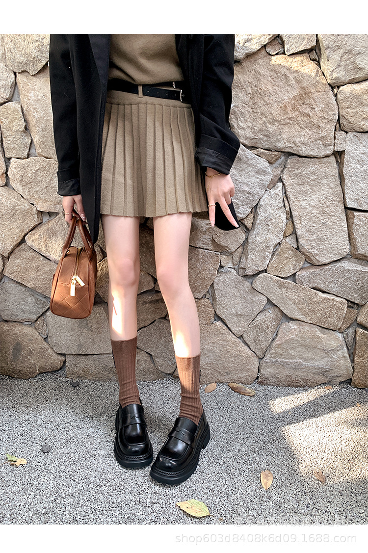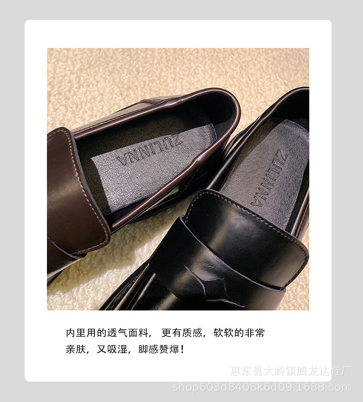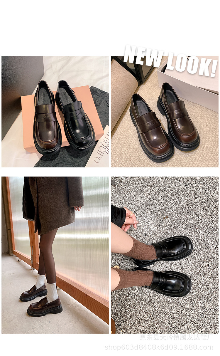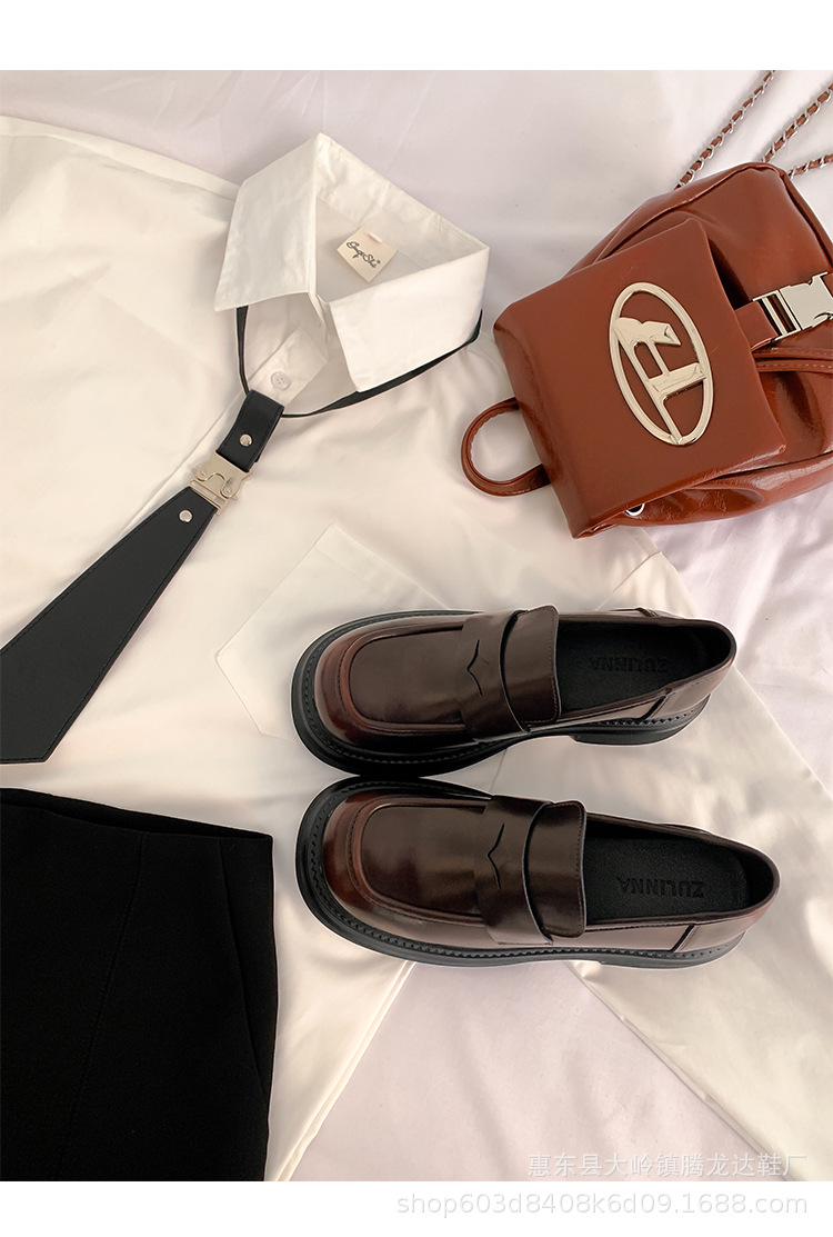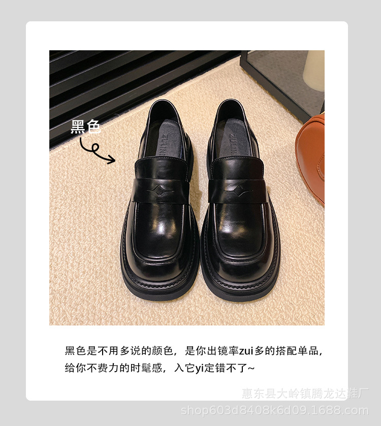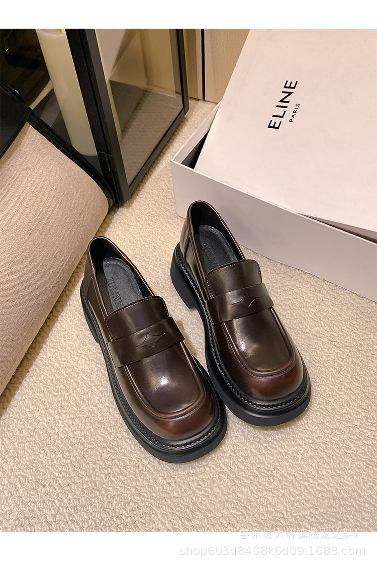수인인과 같은 스타일의 여성용 가죽 두꺼운 밑창 로퍼, 가을 신상 레트로 영국풍 슬립온 가죽 신발스토어 가기