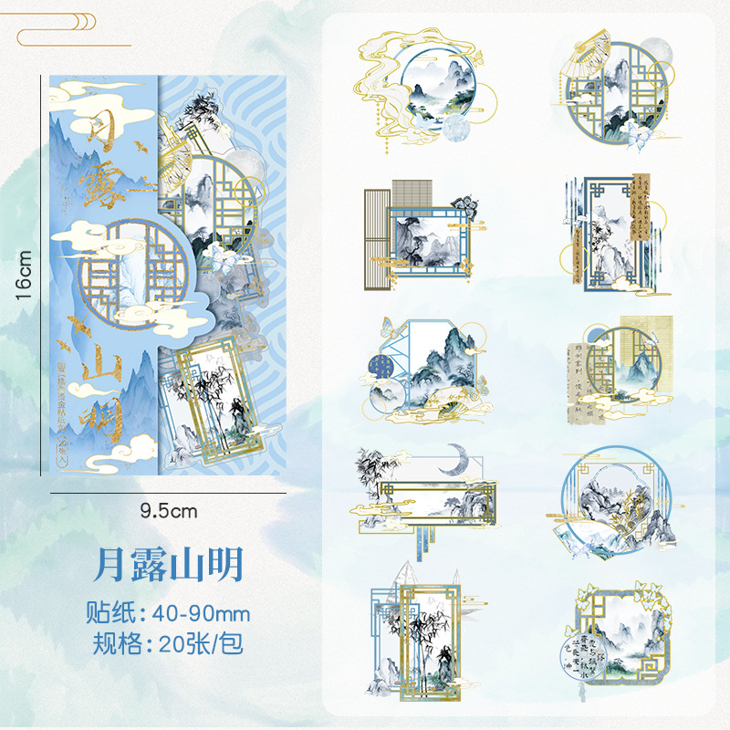 창조적 인 Guofeng PET 핫 스탬핑 스티커 팩 중국 골동품 스타일 Paste Goka 흐름 대마 손 계정 diy 장식 소재 스티커