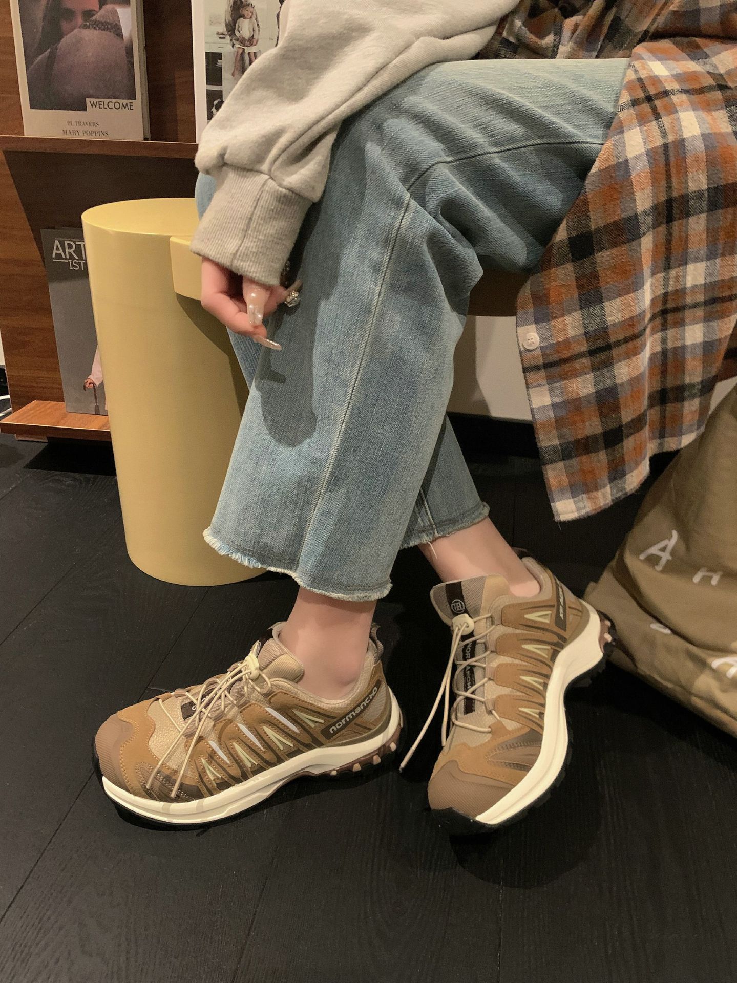 여성을위한 두꺼운 밑창 인기 야외 하이킹 스포츠 신발 2025 봄 새로운 복고풍 통기성 경량 Drawstring 캐주얼 운동화스토어 가기