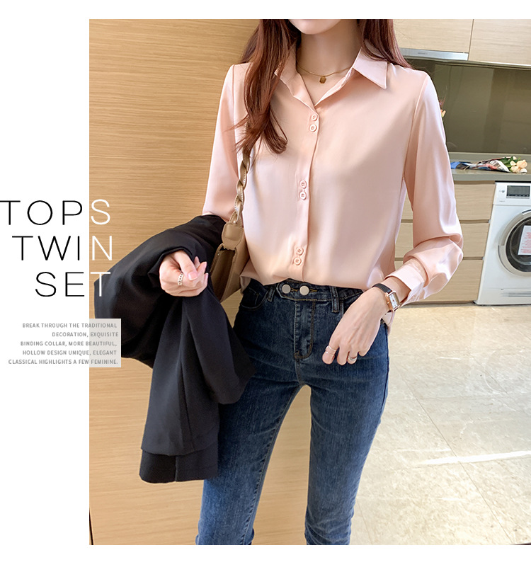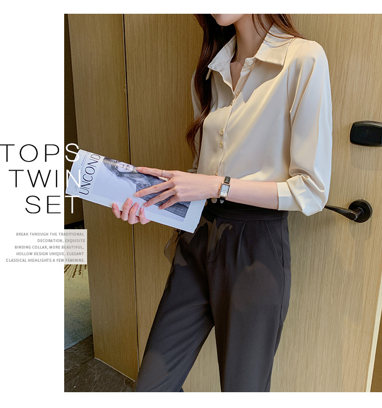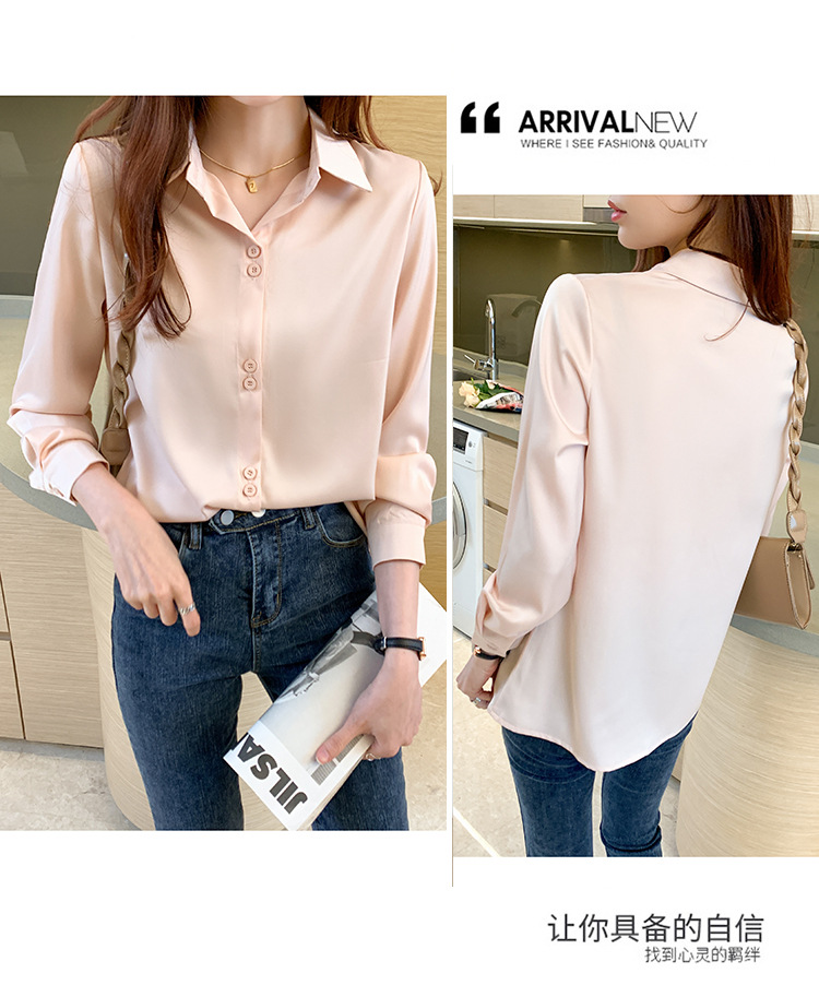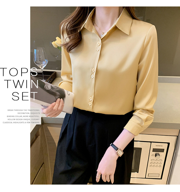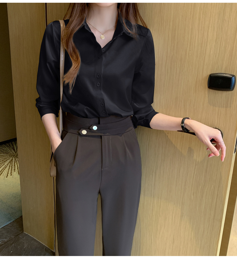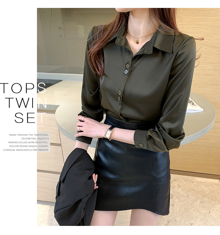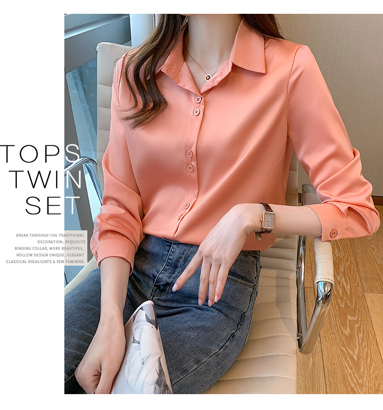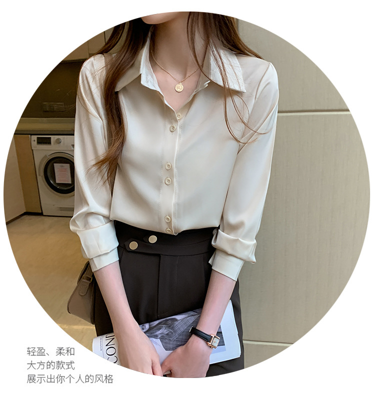 2025 봄과 여름 한국 스타일 전문 셔츠 여성 디자인 틈새 복고풍 홍콩 스타일 탑 아세테이트 새틴 셔츠