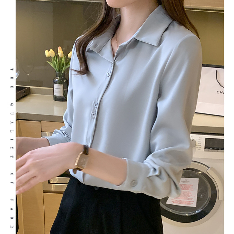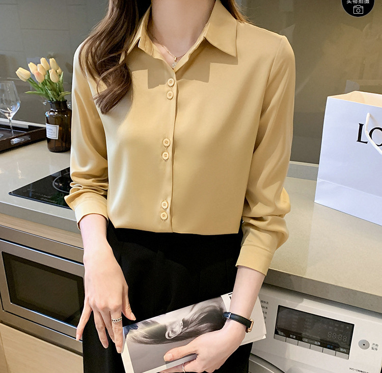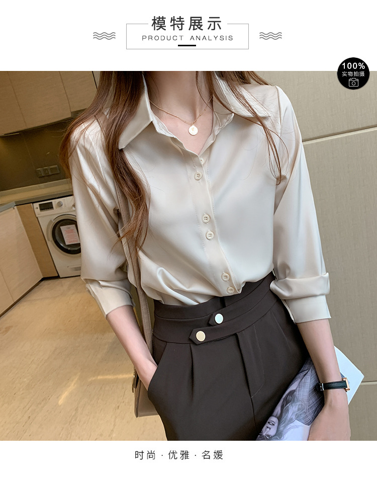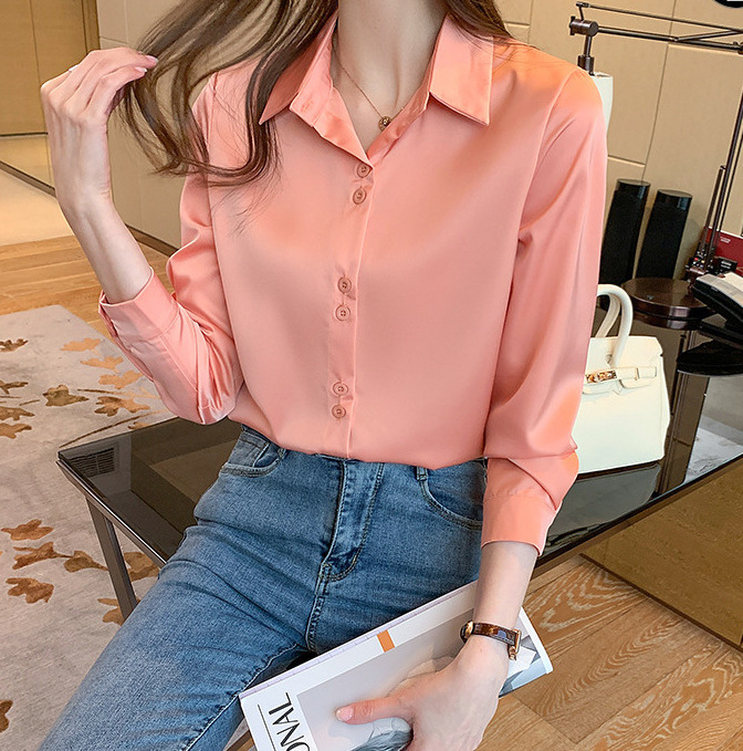2025 봄과 여름 한국 스타일 전문 셔츠 여성 디자인 틈새 복고풍 홍콩 스타일 탑 아세테이트 새틴 셔츠스토어 가기