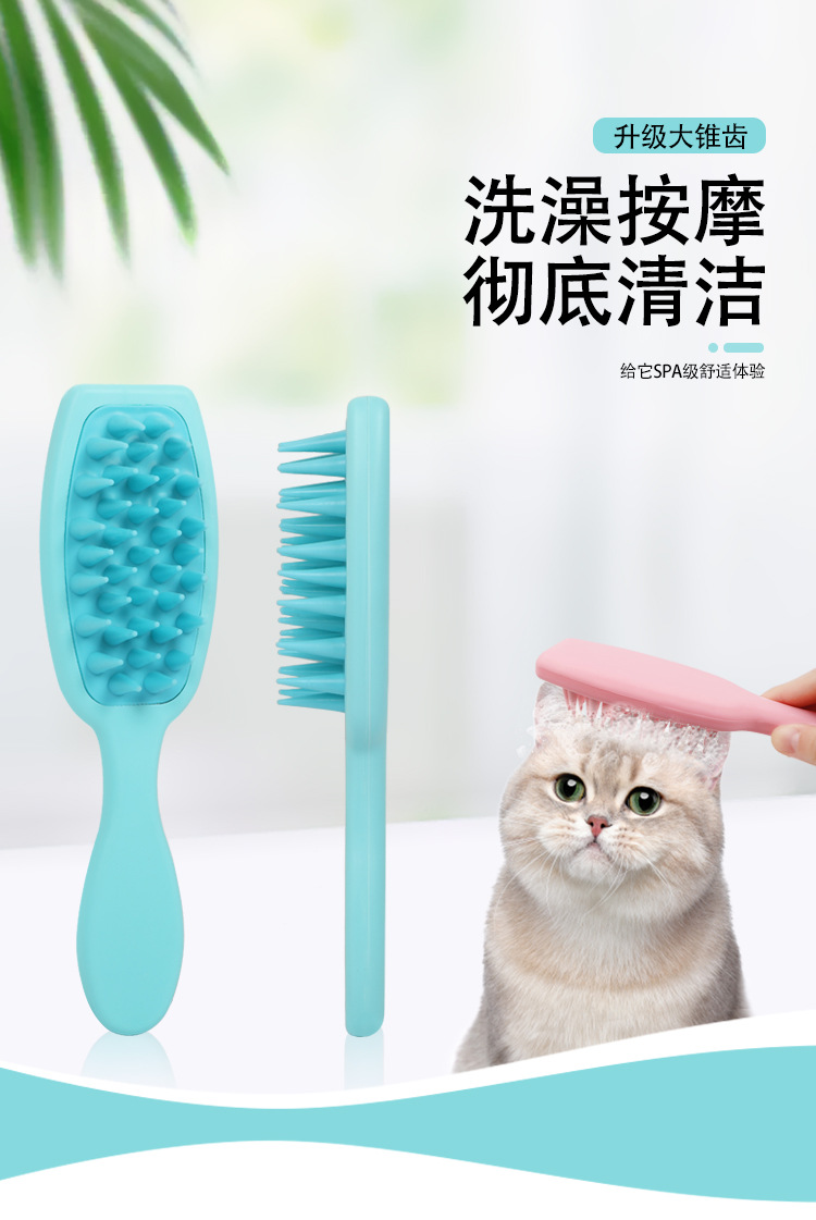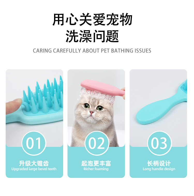 크로스 보더 애완 동물 실리콘 핸들 목욕 브러쉬 부드러운 치아 강아지 목욕 마사지 빗 헤어 케어 청소 애완 동물 빗스토어 가기