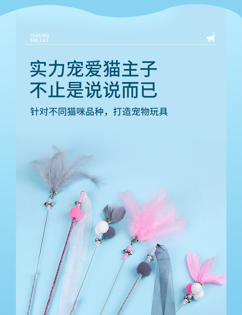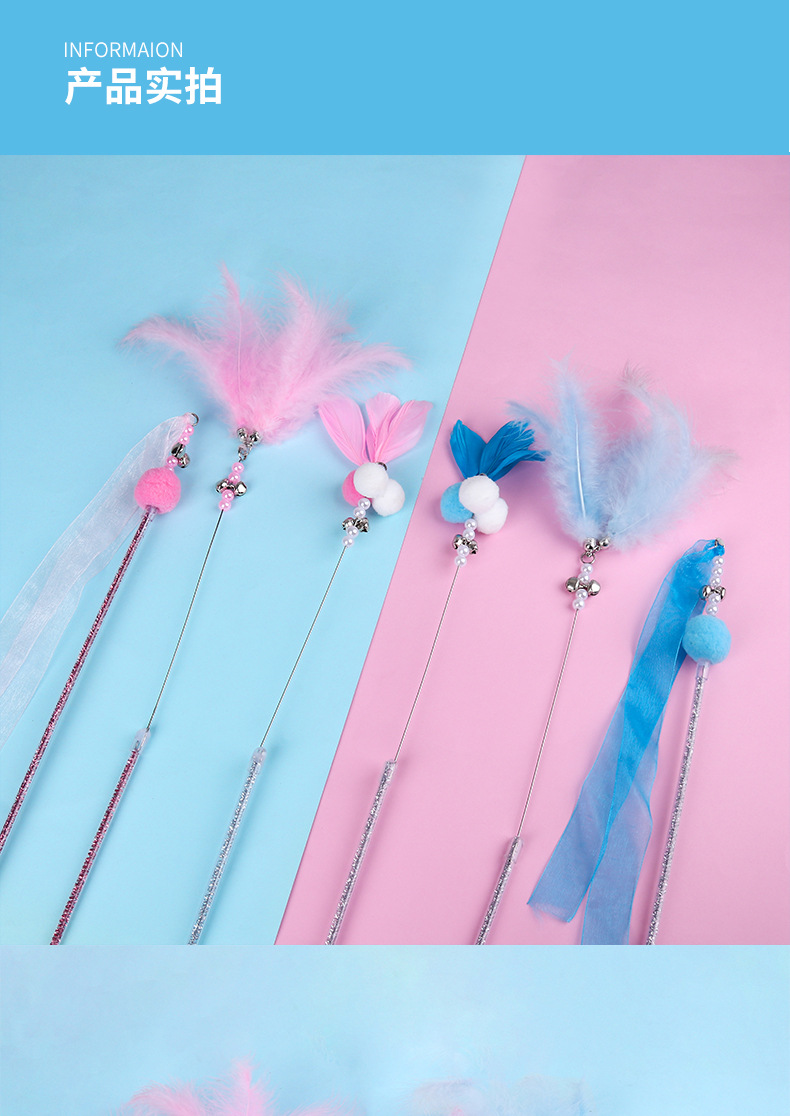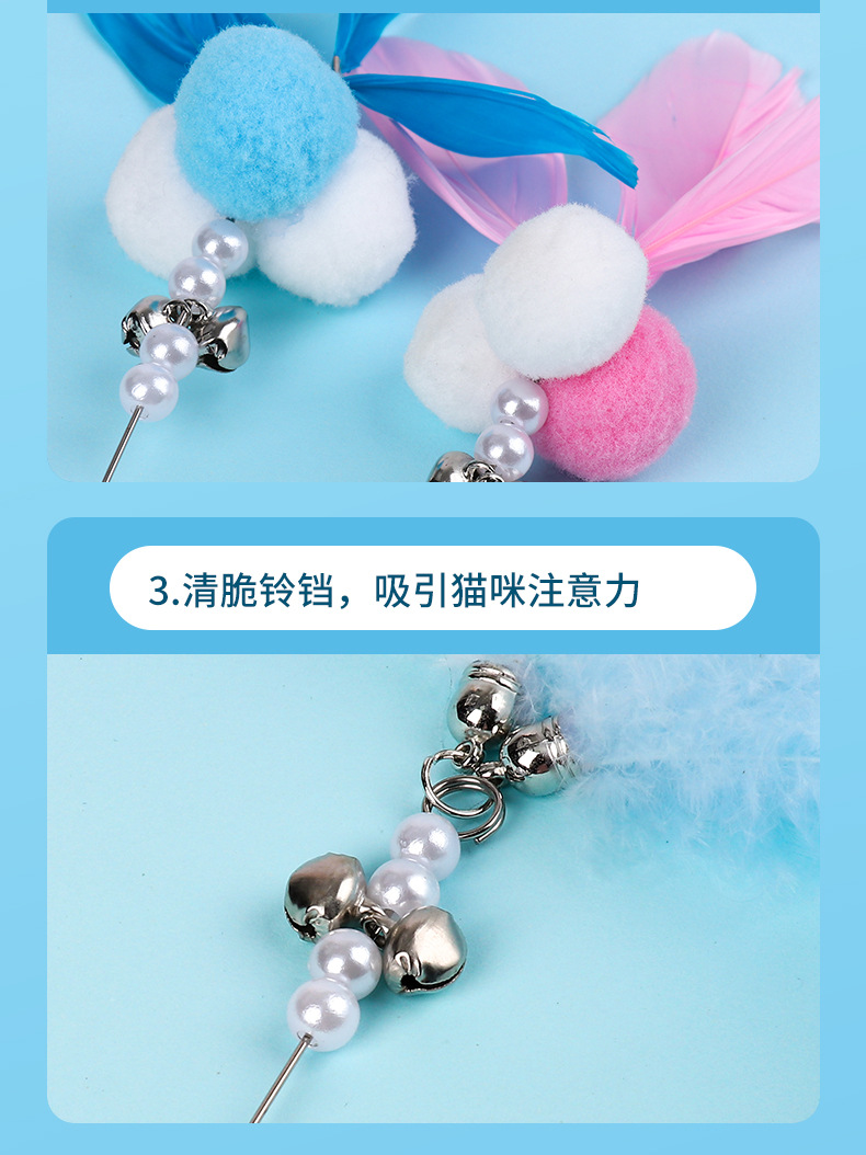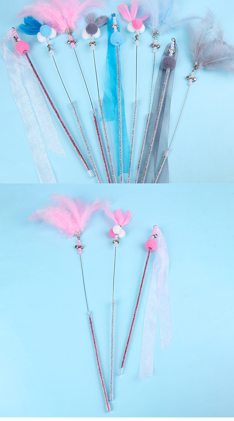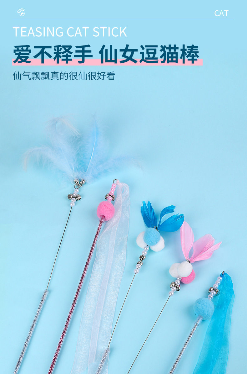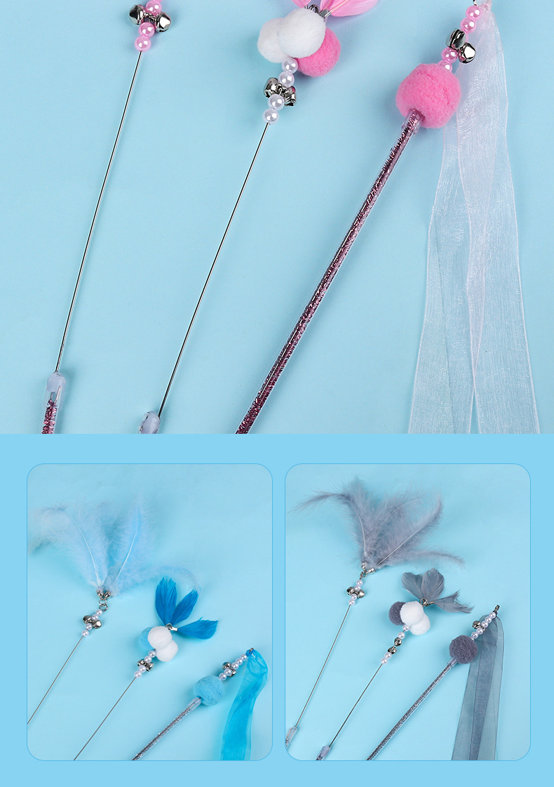 재미 고양이 스틱 스틸 와이어 요정 술 깃털 벨 고양이 대화 형 고양이 장난감 물린 방지 대화 형 애완 동물 용품 도매스토어 가기
